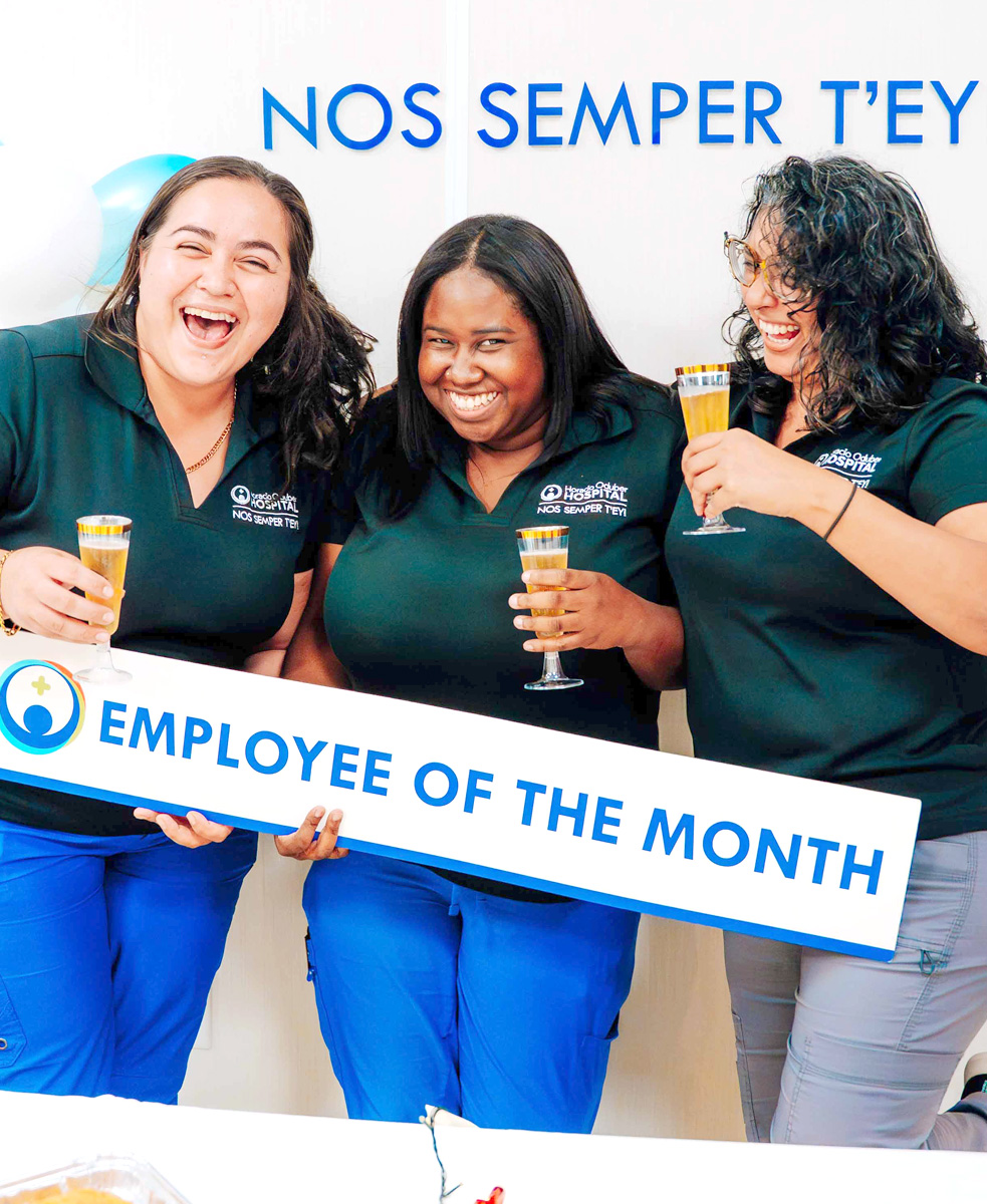 ORANJESTAD (AAN): Dr. Horacio Oduber Hospital (HOH) durante henter aña ta saca tur luna un empleado cu a resalta y e biaha aki e ultimo empleado di luna pa aña 2025 ta Erwina Sophia di departamento di voeding.