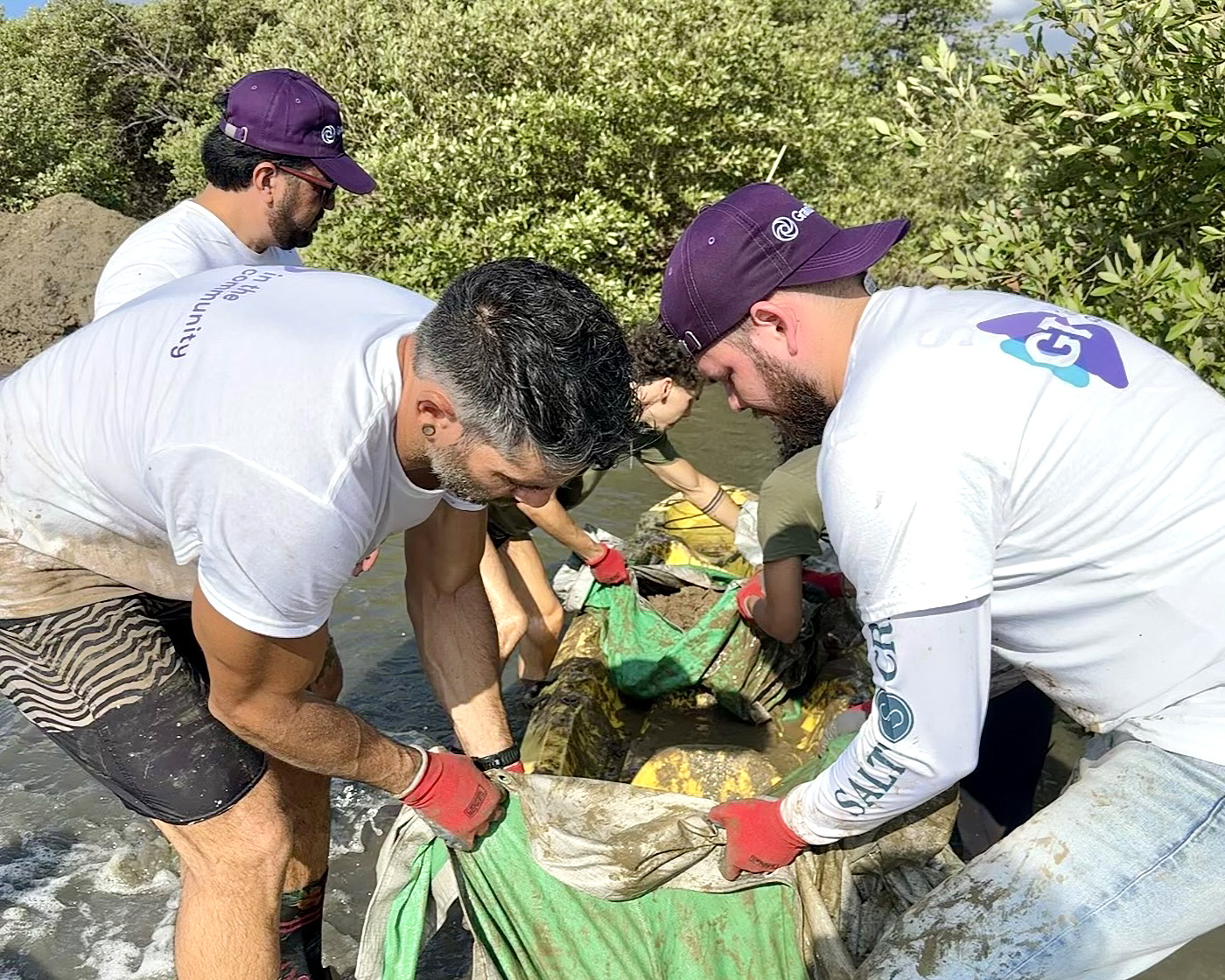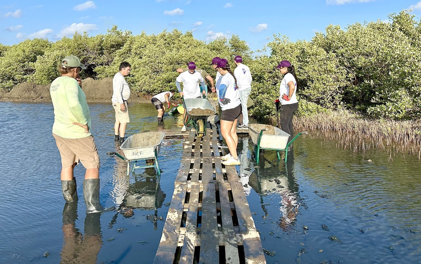 Na Spaans Lagoen, e ekipo di e compania Grant Thorton a lora nan manga pa yuda restaura e canal di mondi di mangel, mehora e fluho di awa y duna sosten na e salud di nos sistema ecologico unico.