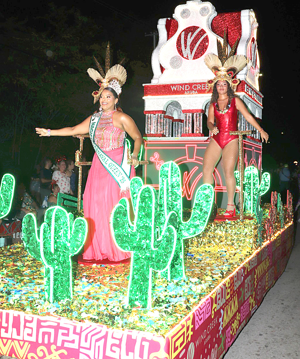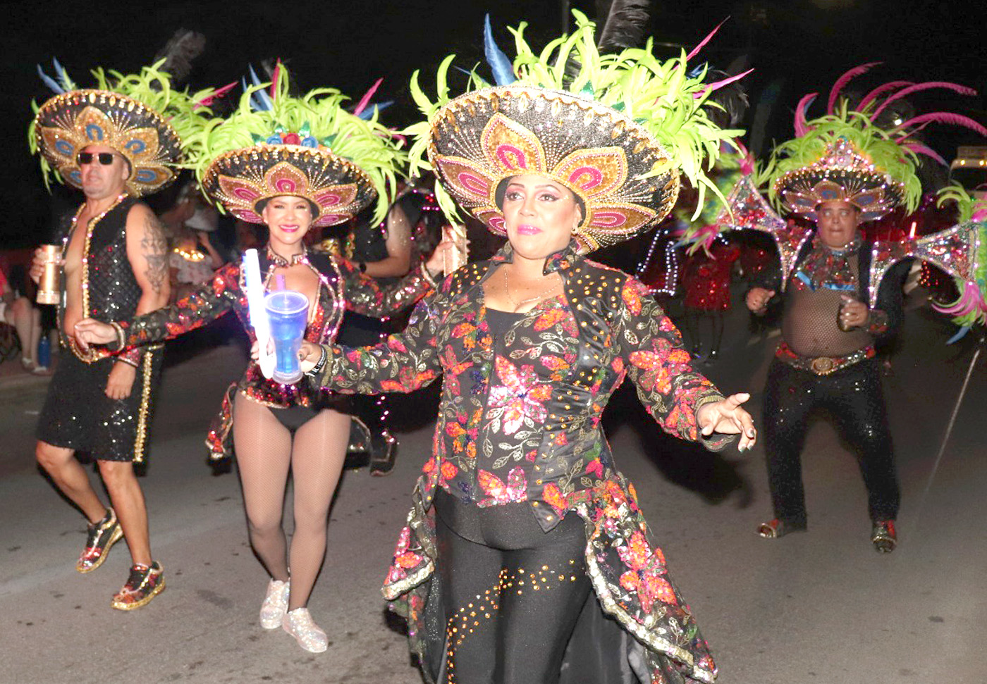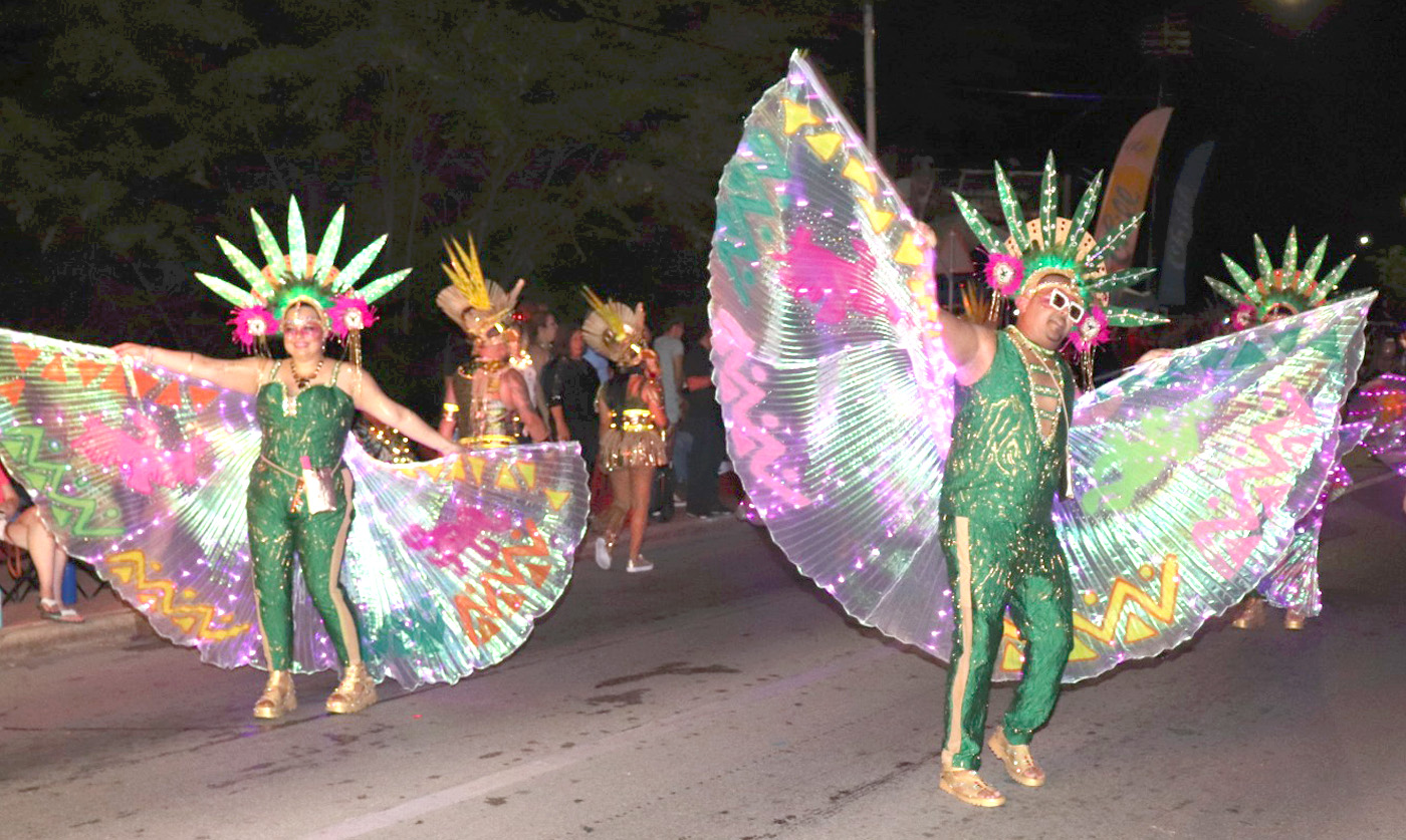 ORANJESTAD (AAN): Simplemente fabuloso e Lighting Parade diasabra anochi, cu a habri cu e presentacion espectacular di un steel band, cu su integrantenan luciendo un luhoso costume, y asina a prepara e espacio pa e ocho gruponan cu a participa.