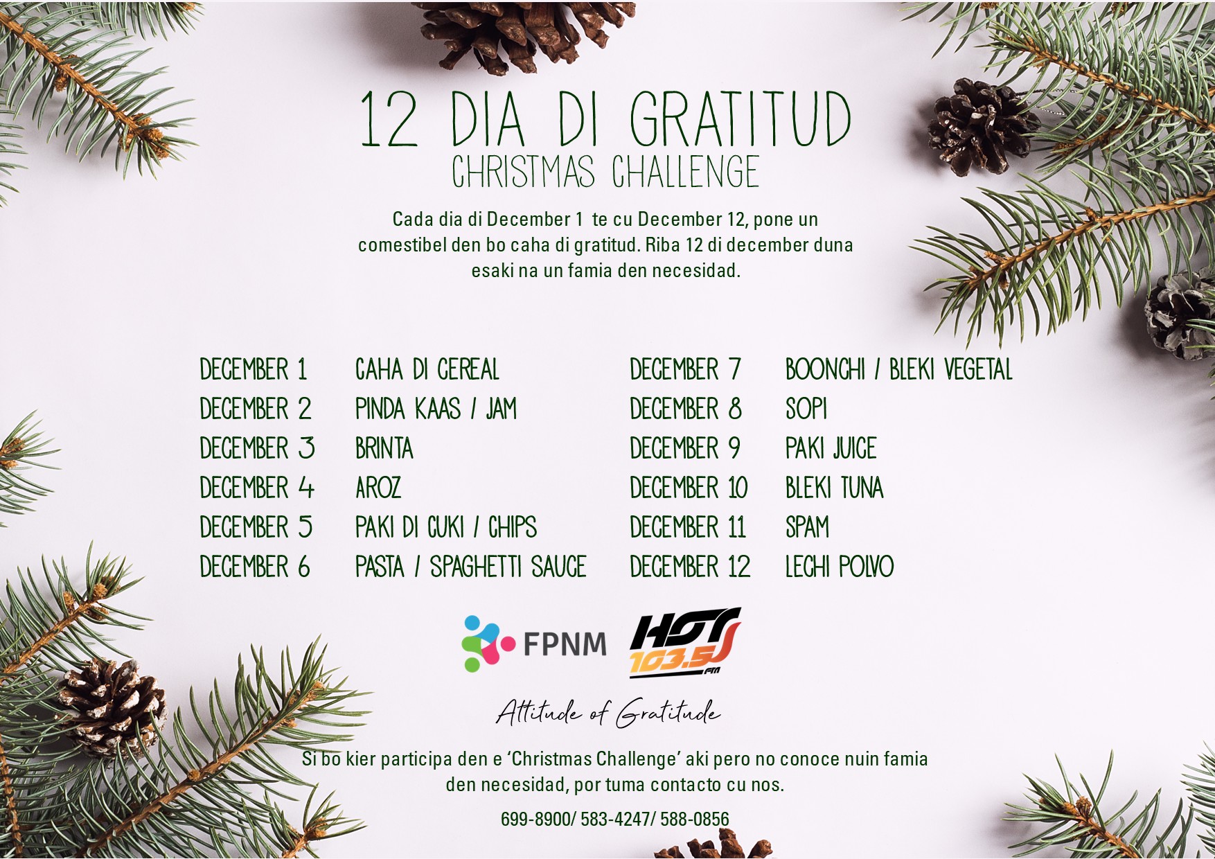 FPNM ta invita comunidad henter pa participa den e ‘Christmas Challenge’ di “12 Dia di Gratitud.”