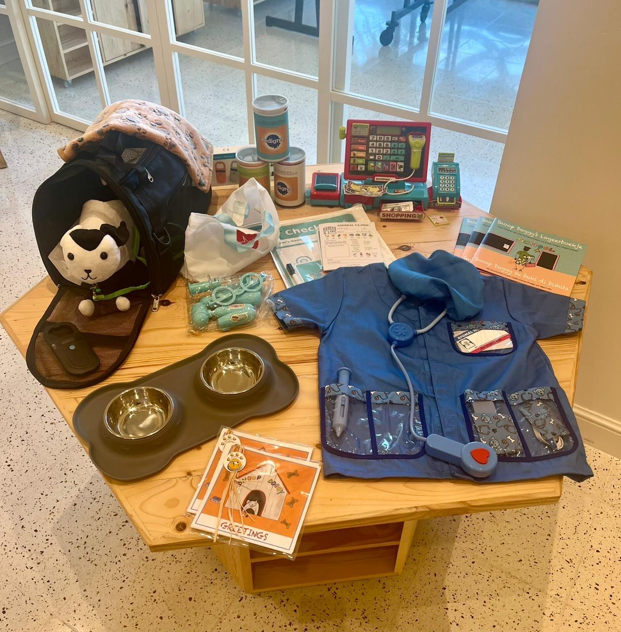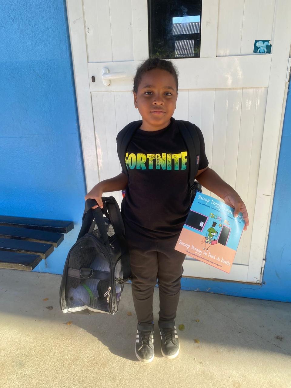 Tur weekend, un alumno di 2de klas lo hiba e peluche di Snoop Doggy cas, cas hunto cu un buki di actividad/tarea. Tambe e alumno lo haya un tas unda tin diferente articulo pa cuida e peluche p.e. un leash, baki di awa y cuminda y mucho mas. E idea patras di e projecto ta pa yuda muchanan compronde loka ta significa pa tin un mascota. Cu esaki no simplemente kiermen pa laga e mascota den cura pero cu esaki ta ensera pa dun’e cuminda, awa, atencion y hopi amor.