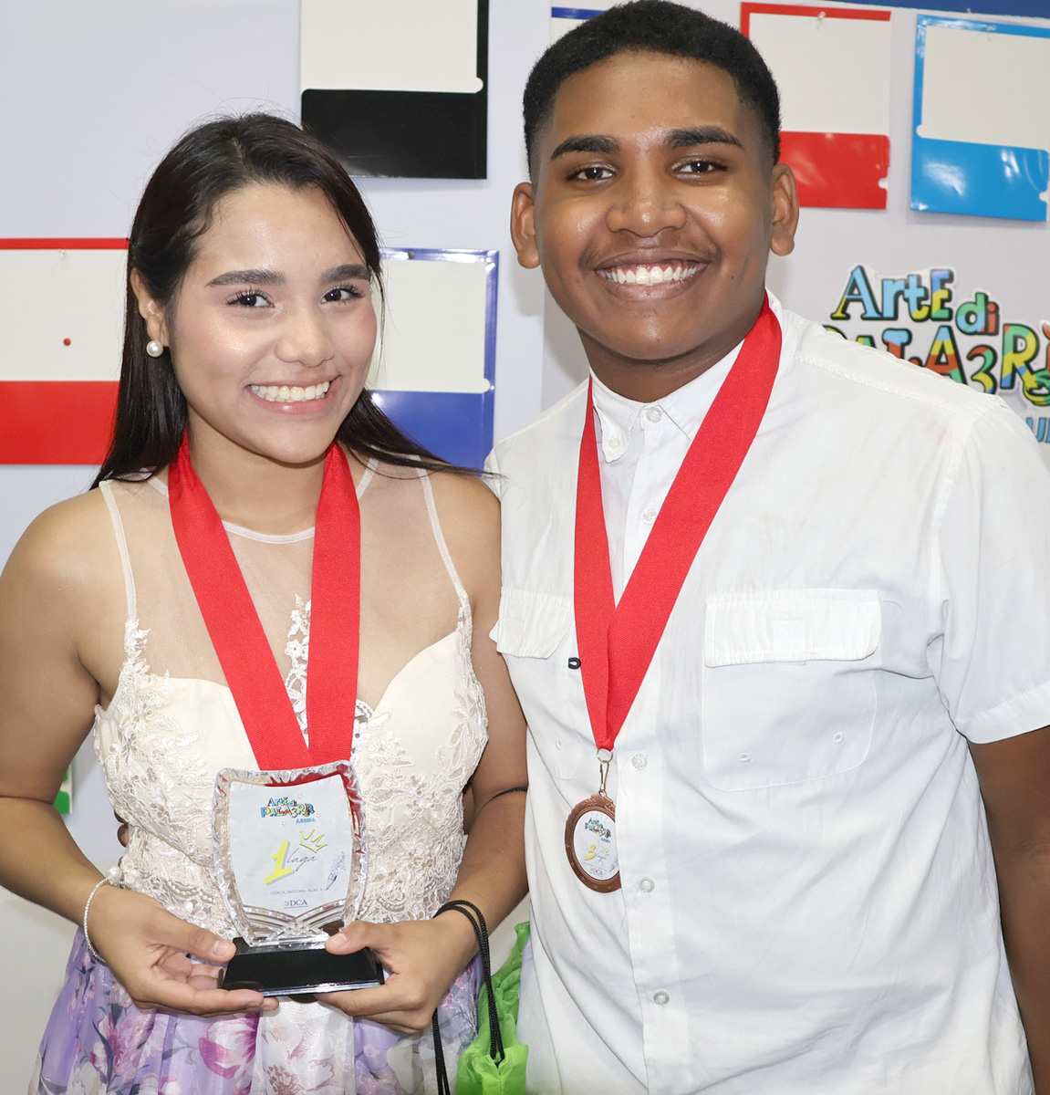 E competencia di Arte di Palabra Aruba a tuma luga dia 28 di maart ultimo na Colegio EPI, unda hoben talentonan di diferente scol a mustra nan creatividad, profundidad y capacidad di expresion artistico. E evento a conta cu presencia di Minister Wendell Cicilia, kende a mustra su apoyo pa desaroyo cultural y artistico di nos hobennan. Aki ta sigui ganadornan pa Categoria.