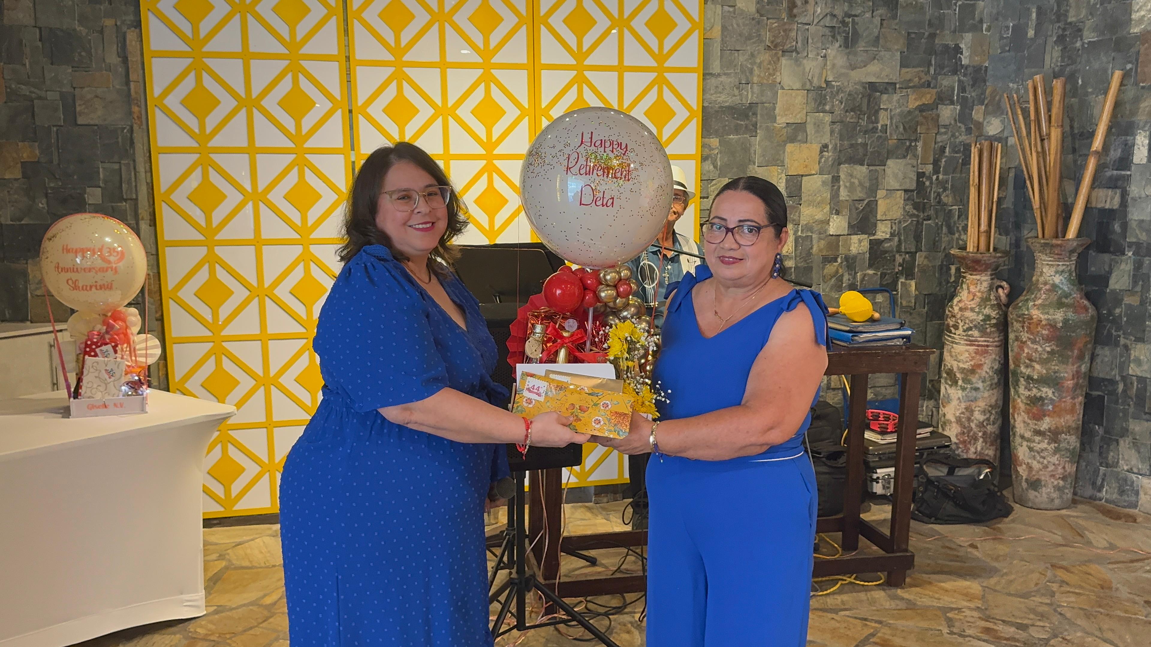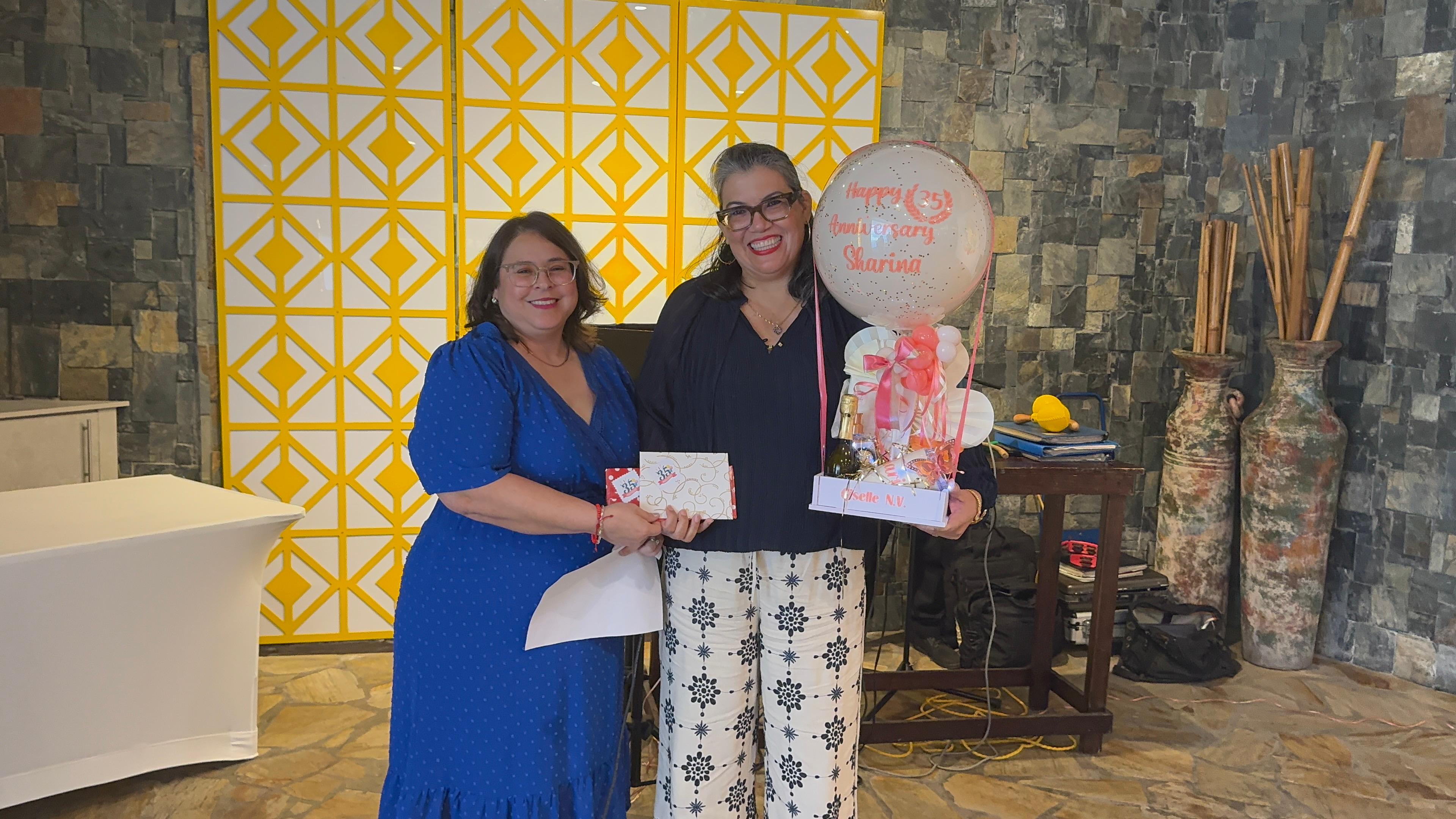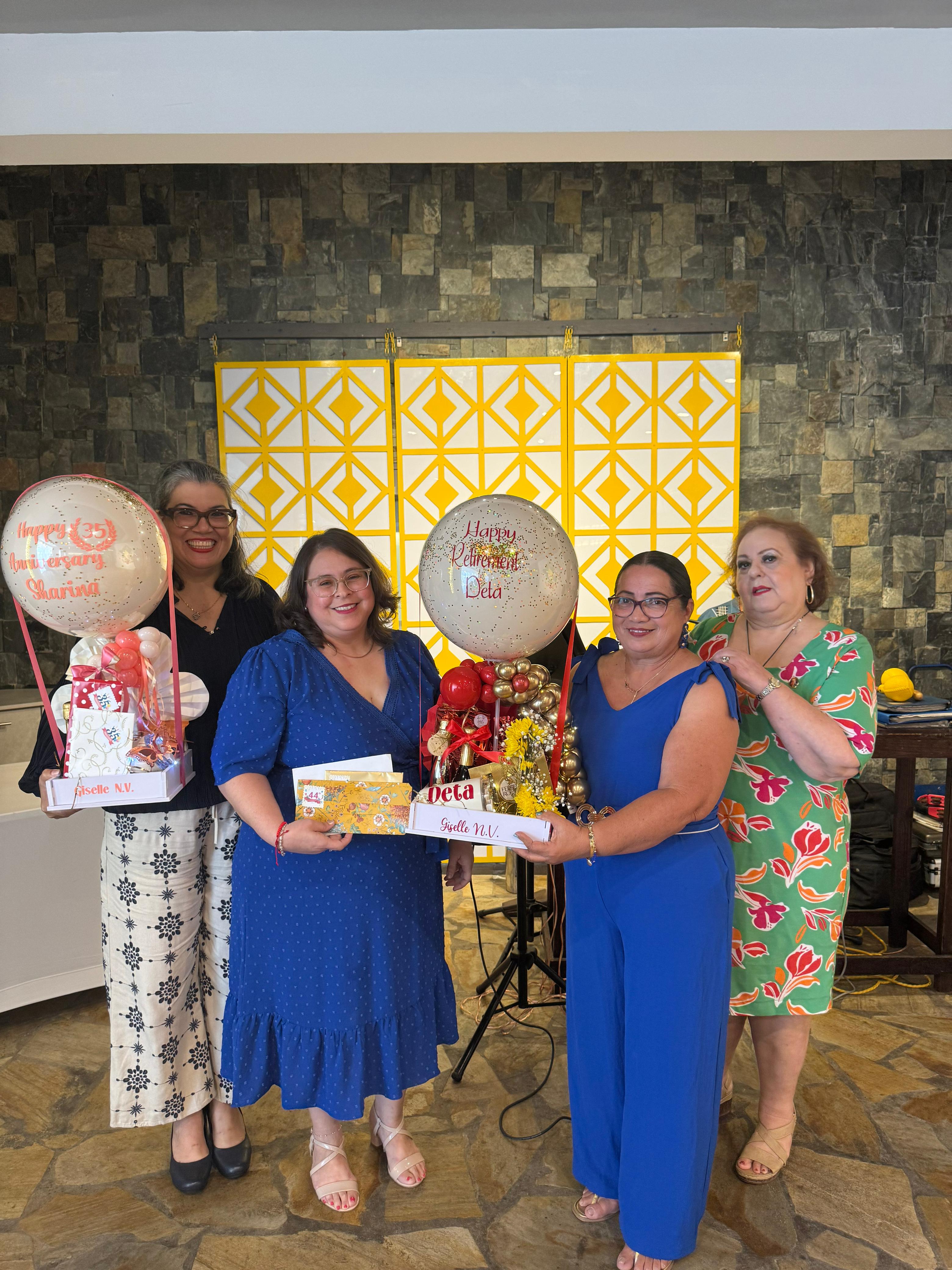 Staf di Giselle Department Store ta desea Sharina hopi aña mas cu Giselle y cu Deta disfruta di su pensioen.
