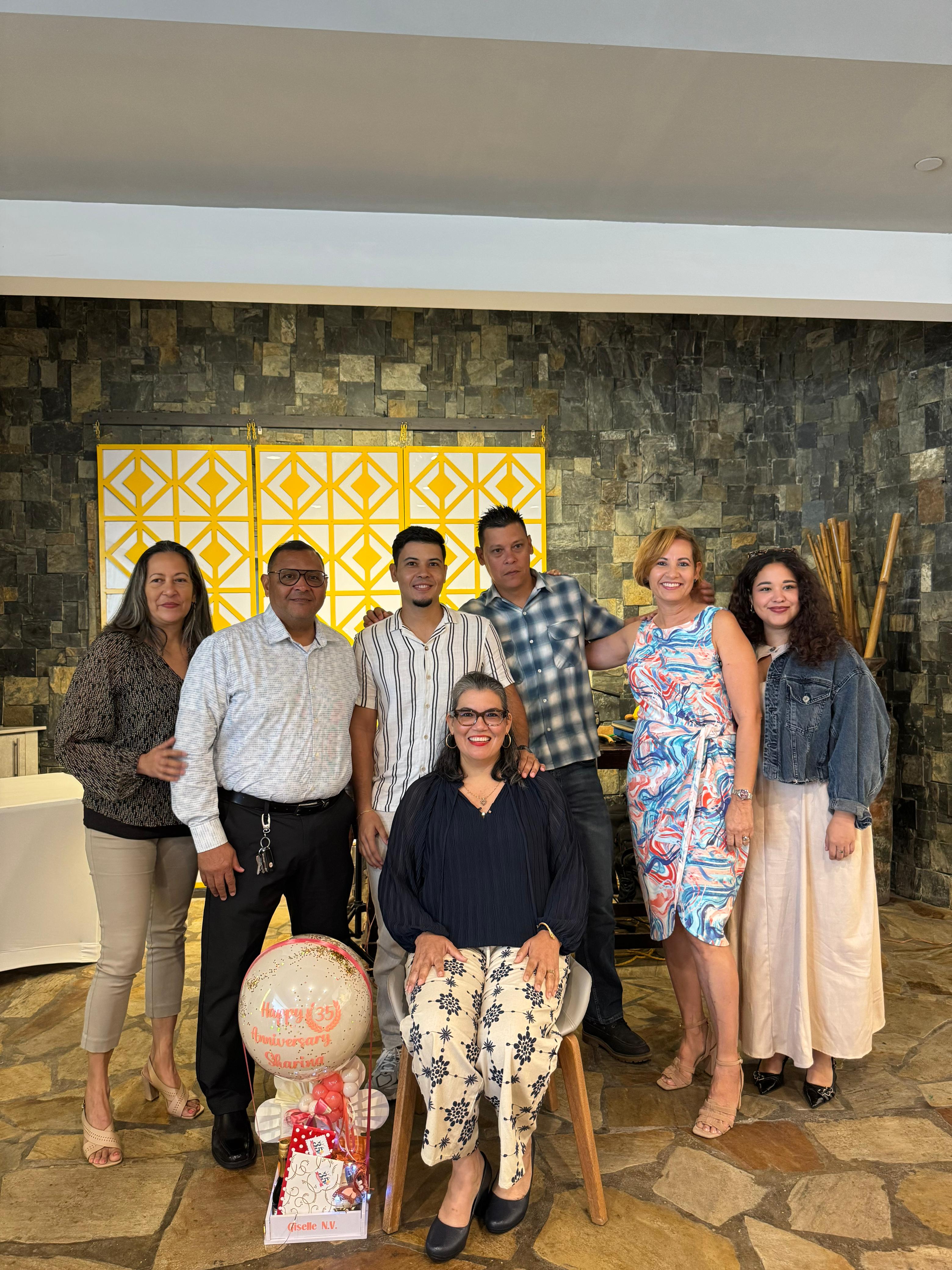E honor pa esaki a tuma lugar cu nan colega- y famia na Holiday Inn Aruba. Sharina ta funcionando aworaki como nan Head Cashier.
