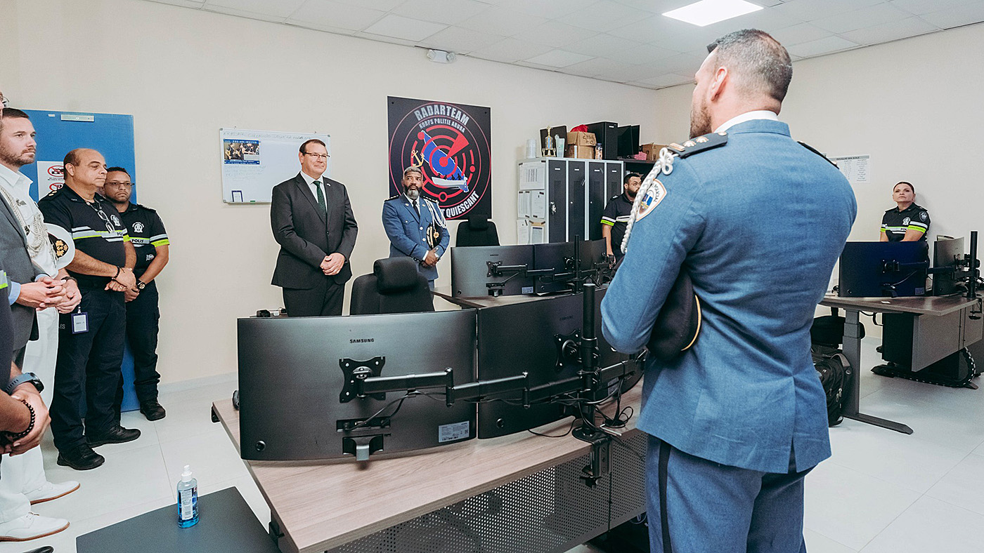 Despues acompaña pa sr. Arnhem, Gobernador a continua pa e Operation Command Center nobo cu a wordo construi na Savaneta, caminda a haci un recorido y a combersa pa loke ta e actividadnan di KPA na e centro policial aki.