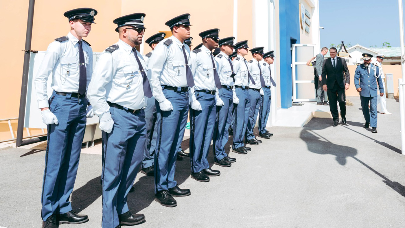 E bishita a cuminza na warda di polis situa na Santa Cruz, unda Gobernador a topa cu Hefe di Polis Ramon Arnhem y e Korps Management Team (KMT).