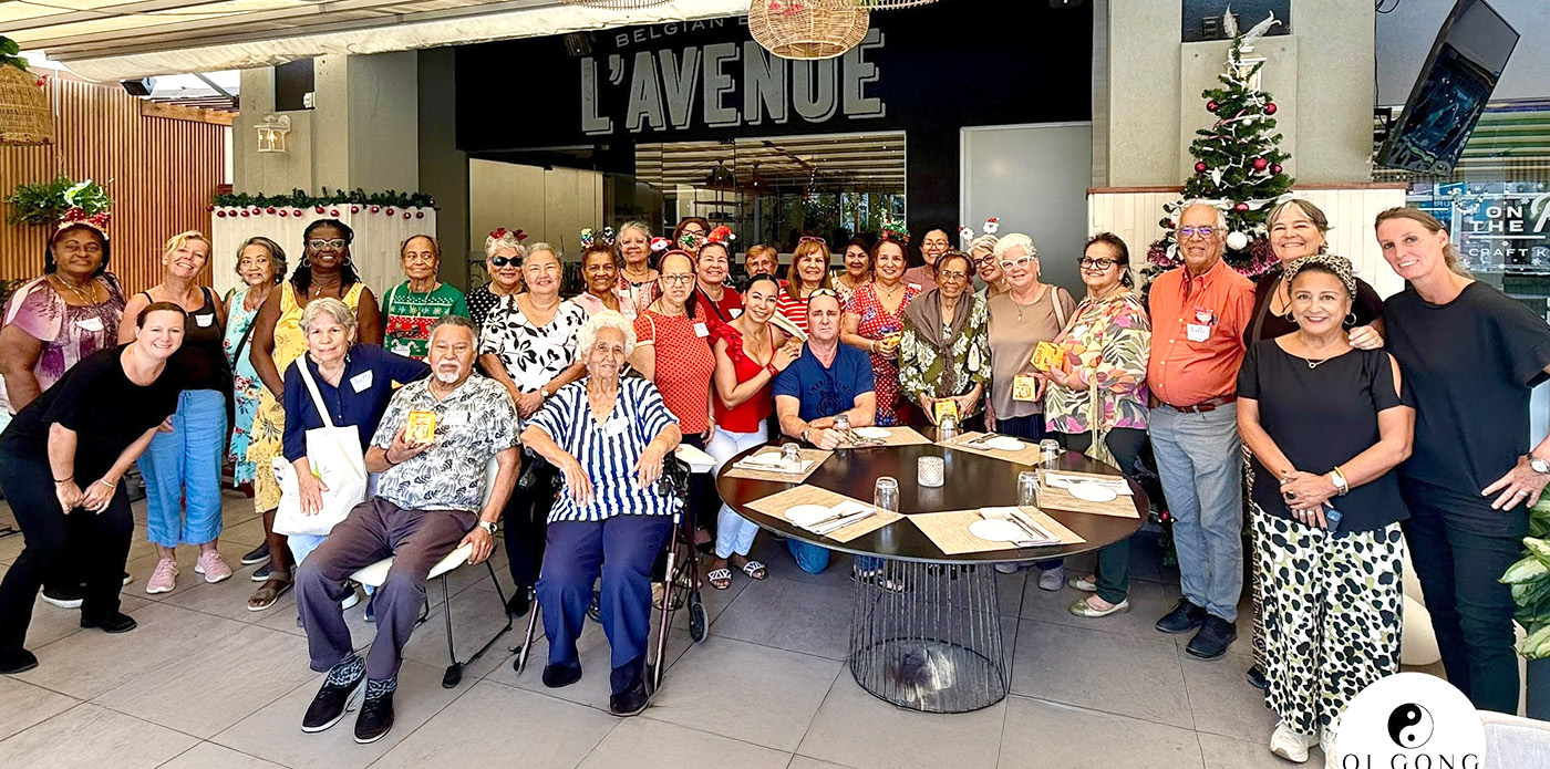 Aki nan tin participantenan adulto mayor cu ta practica Qi Gong, cual ta un medicina filosofico Chines di antes cu ta promove bienestar y salud pa medio di movecion, halamento di rosea, massage, dieta, y visualisacion.