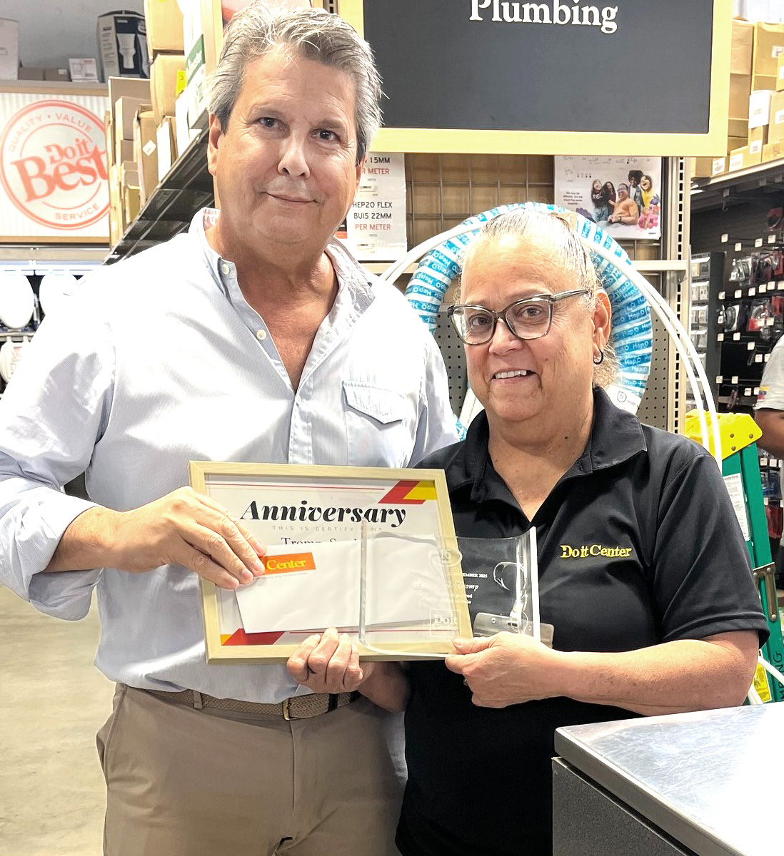 ORANJESTAD (AAN): Un ceremonia special a tuma lugar recien na Super Do It Center, ora cu gerencia a honra un hubilaria special.