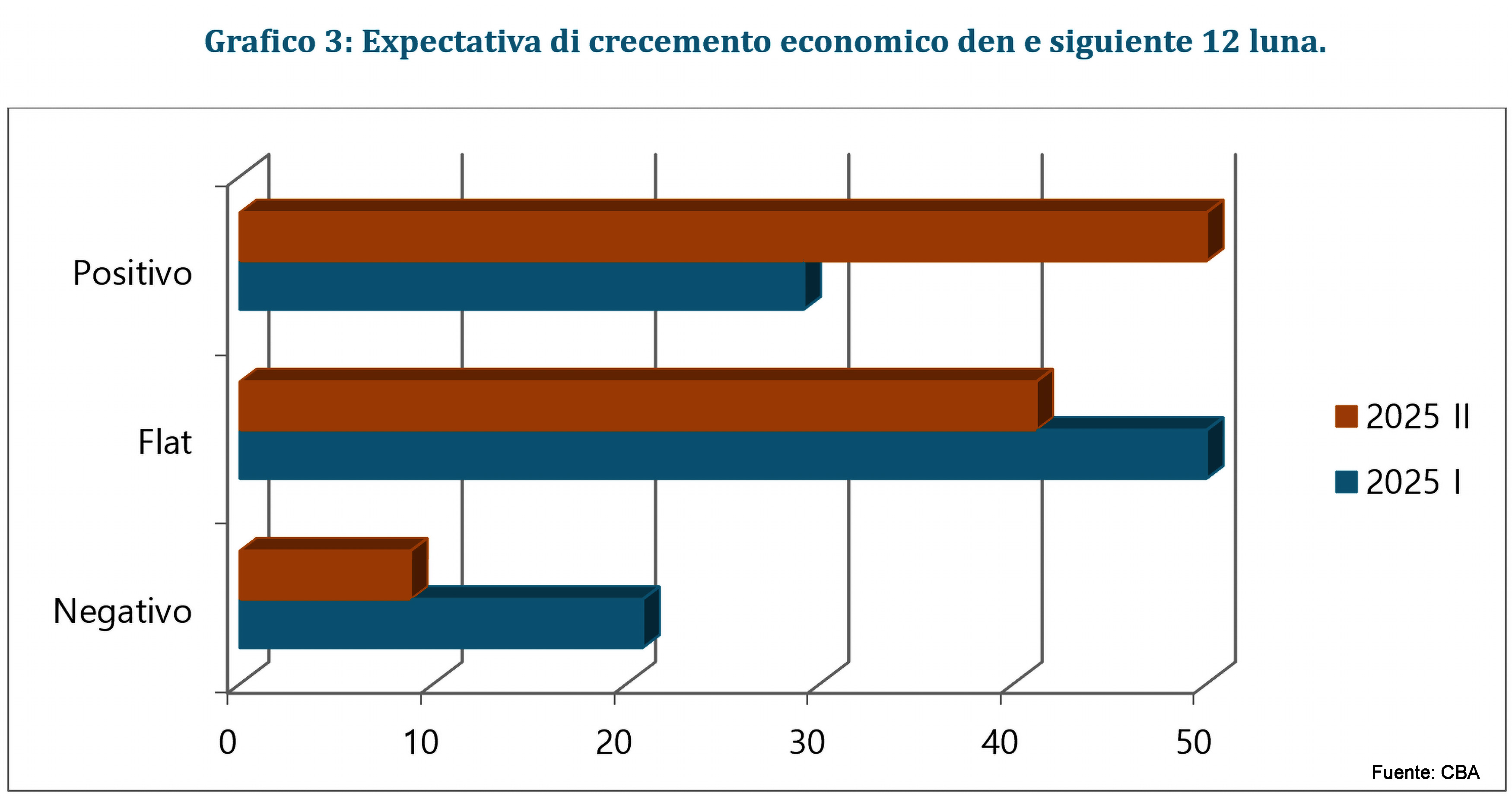E expectativa pa locual ta crecemento economico, mitar di negoshi encuesta ta anticipa un crecemento economico positivo den e siguiente 12 lunanan (mira Grafico 3).