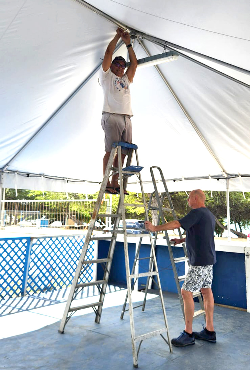 E tent di Carnaval aki di Kiwanis Club of Palm Beach semper ta un lugar caminda hendenan por yega pa asina combersa, disfruta di delicioso Sopi Oester, Pan cu Sate, Pan cu Stoba, Pan cu Keri Keri, y e tradicional Hotdog, Pastechi, y Croket tambe.