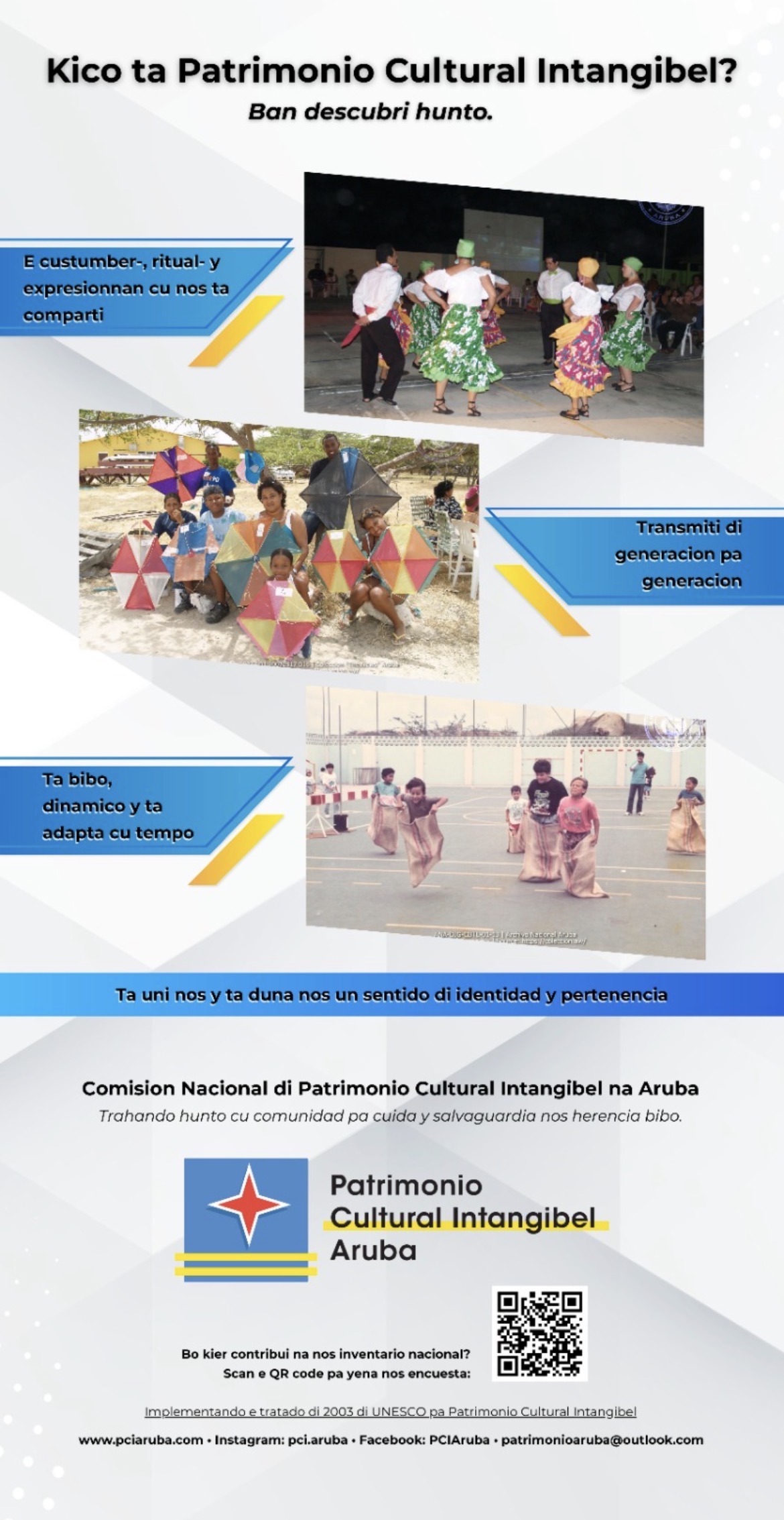 Pa mas informacion, por tuma contacto cu Comision Nacional Patrimonio Cultural Intangibel Aruba via email: This email address is being protected from spambots. You need JavaScript enabled to view it. of pa medio di e pagina di Facebook: Patrimonio Cultural Intangibel di Aruba como tambe Instagram: pci.aruba.