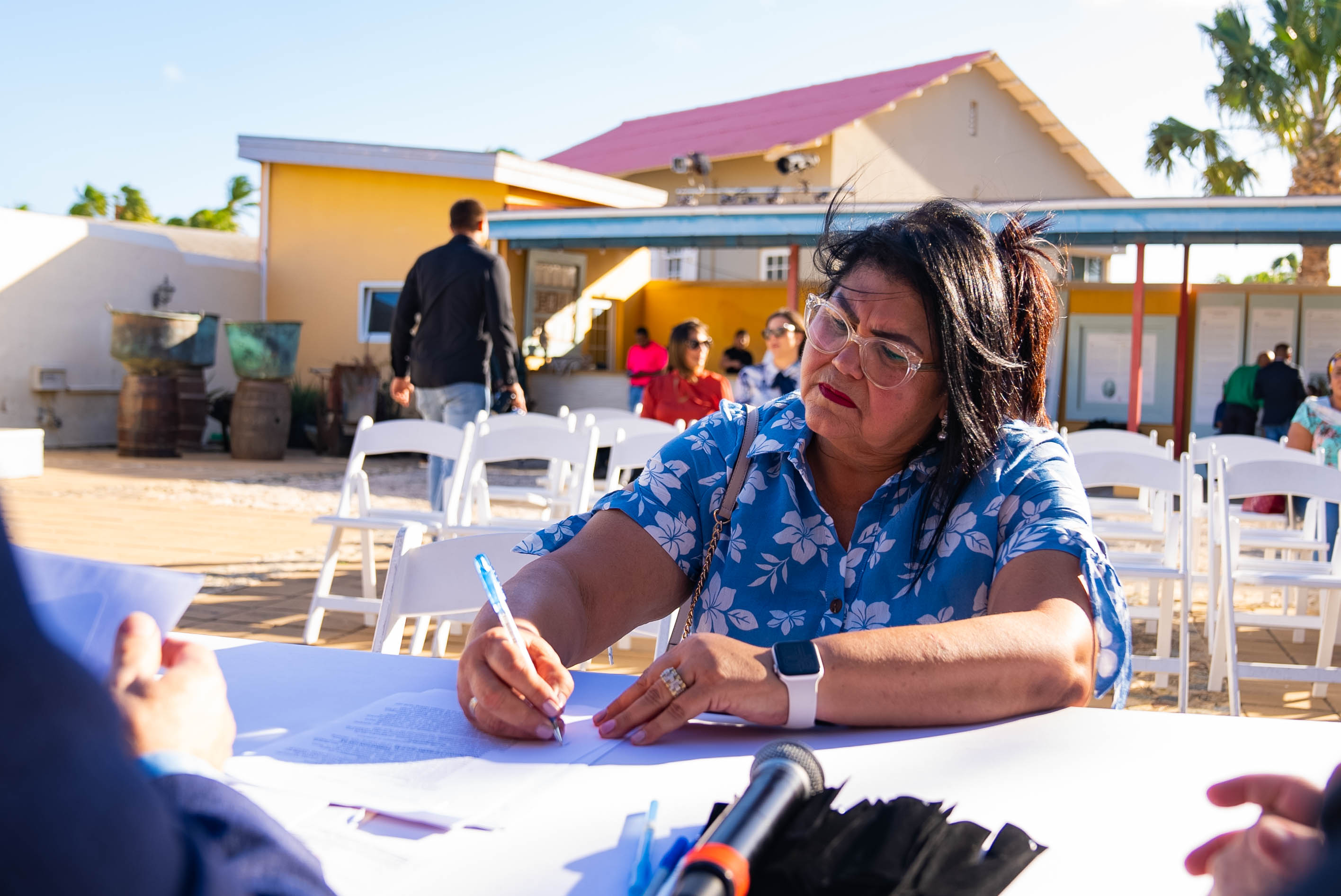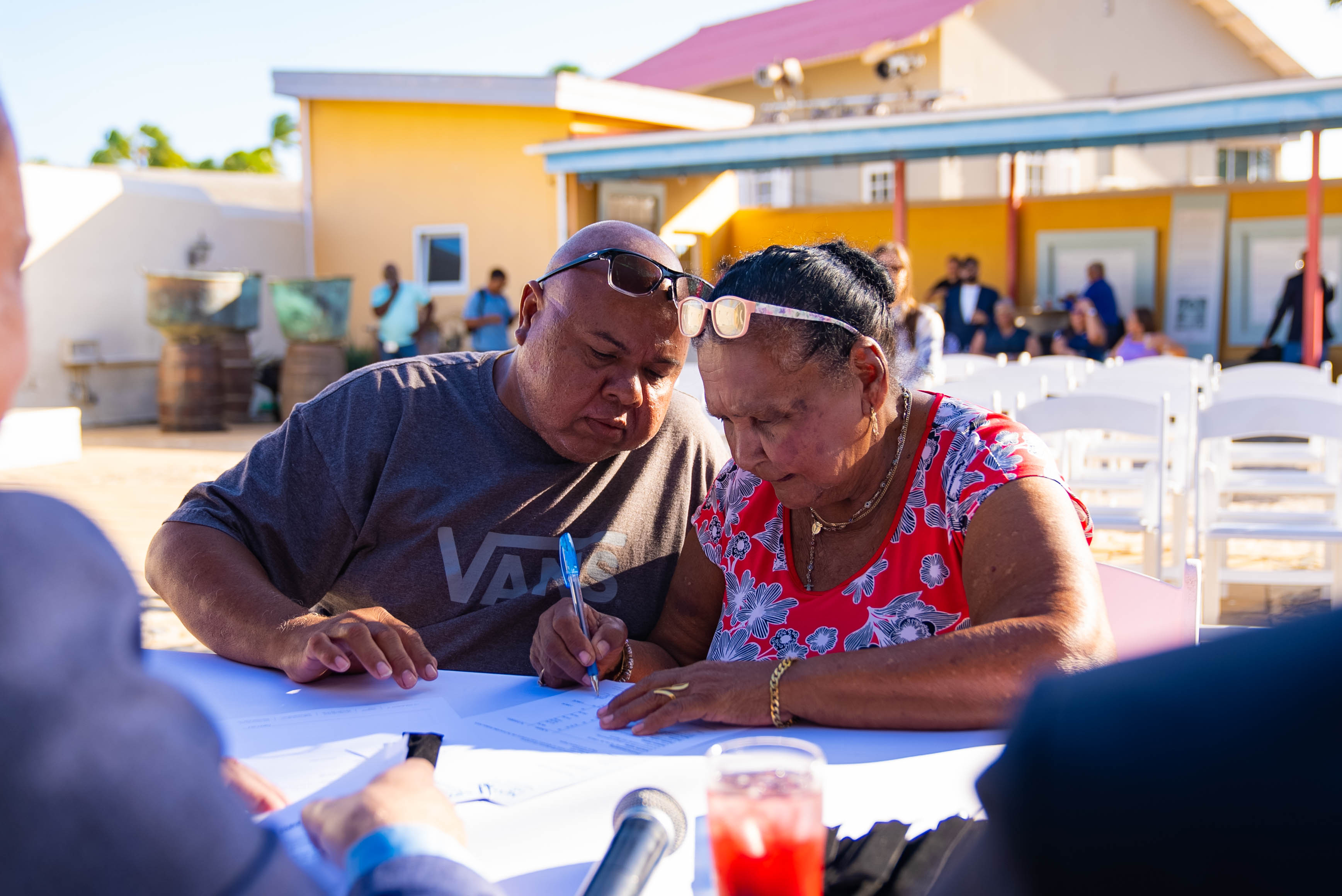 Cu e entrega di e erfpachtakte aki, 20 famia Arubiano mas a logra un paso importante den nan bida: e siguridad di por bisa cu nan ta doño di nan propio cas.