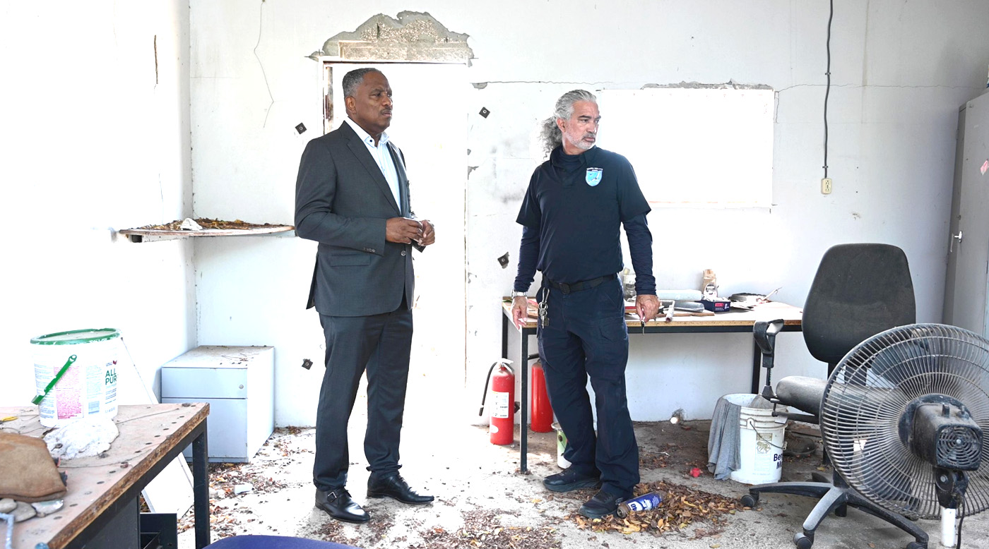 ORANJESTAD (AAN): Minister di Husticia, mr. drs. Arthur Dowers, a haci un bishita na Centro di Detencion na Dakota, na unda Guarda Nos Costa ta ubica y ta tene personanan indocumenta cu ta pendiente nan deportacion.
