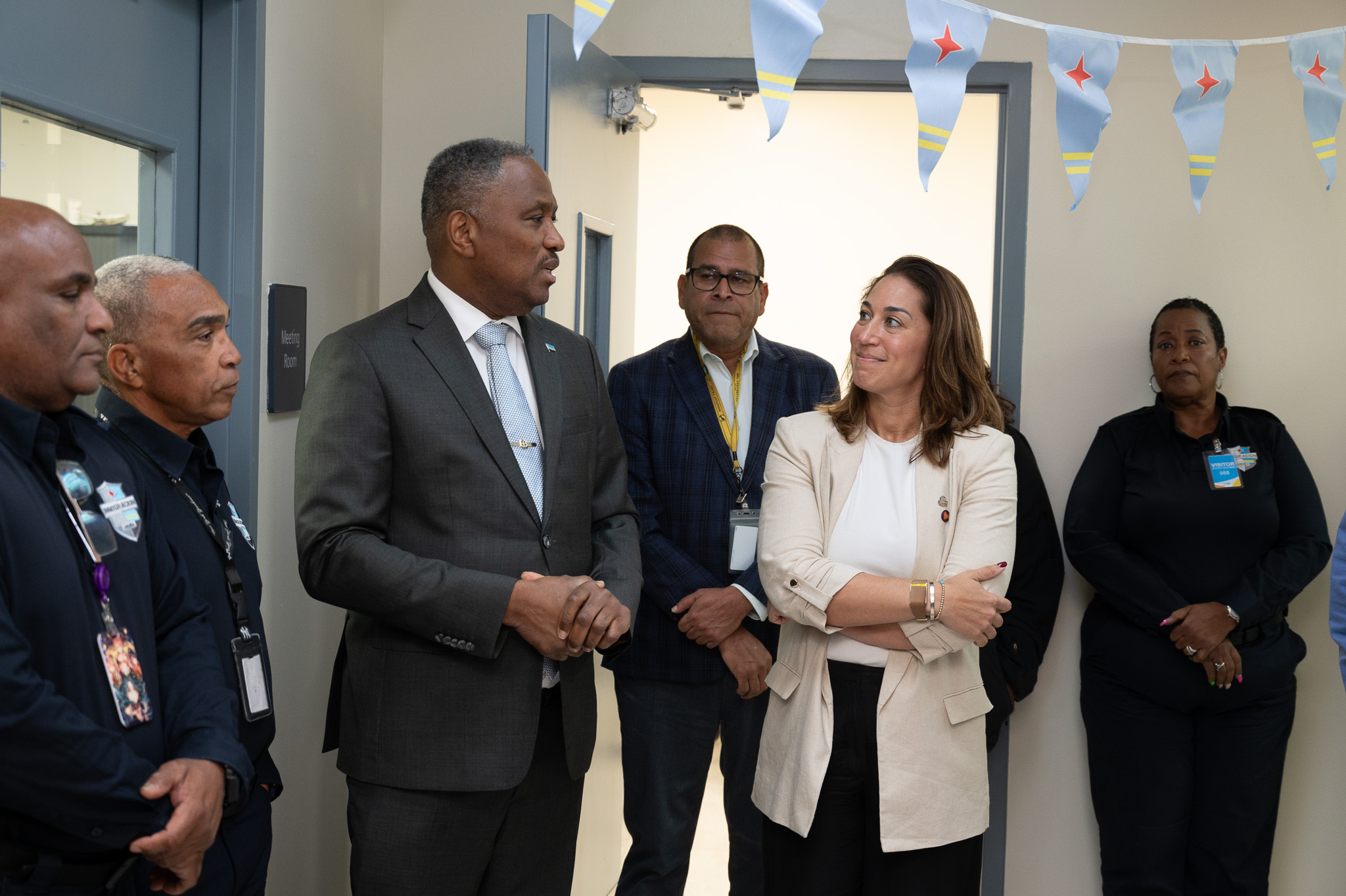 Minister di Husticia di Sint Maarten mr. Nathalie Tackling a haci un bishita oficial na Inmigration Aruba pa conmemora su 57 aniversario, marcando casi seis decada di dedicacion na proteccion di nos frontera y servicio na comunidad.