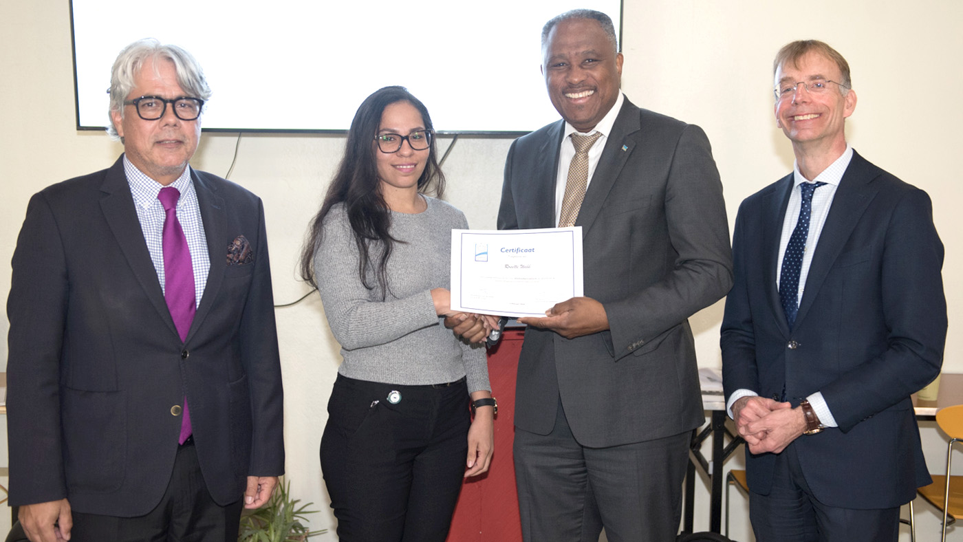 Hunto cu Director di DWJZ, mr. George Croes, Minister Dowers a haci entrega di certificado na cada un di e cursistanan, y a expresa su aprecio pa e dedicacion y compromiso mustra durante e trayecto di capacitacion.