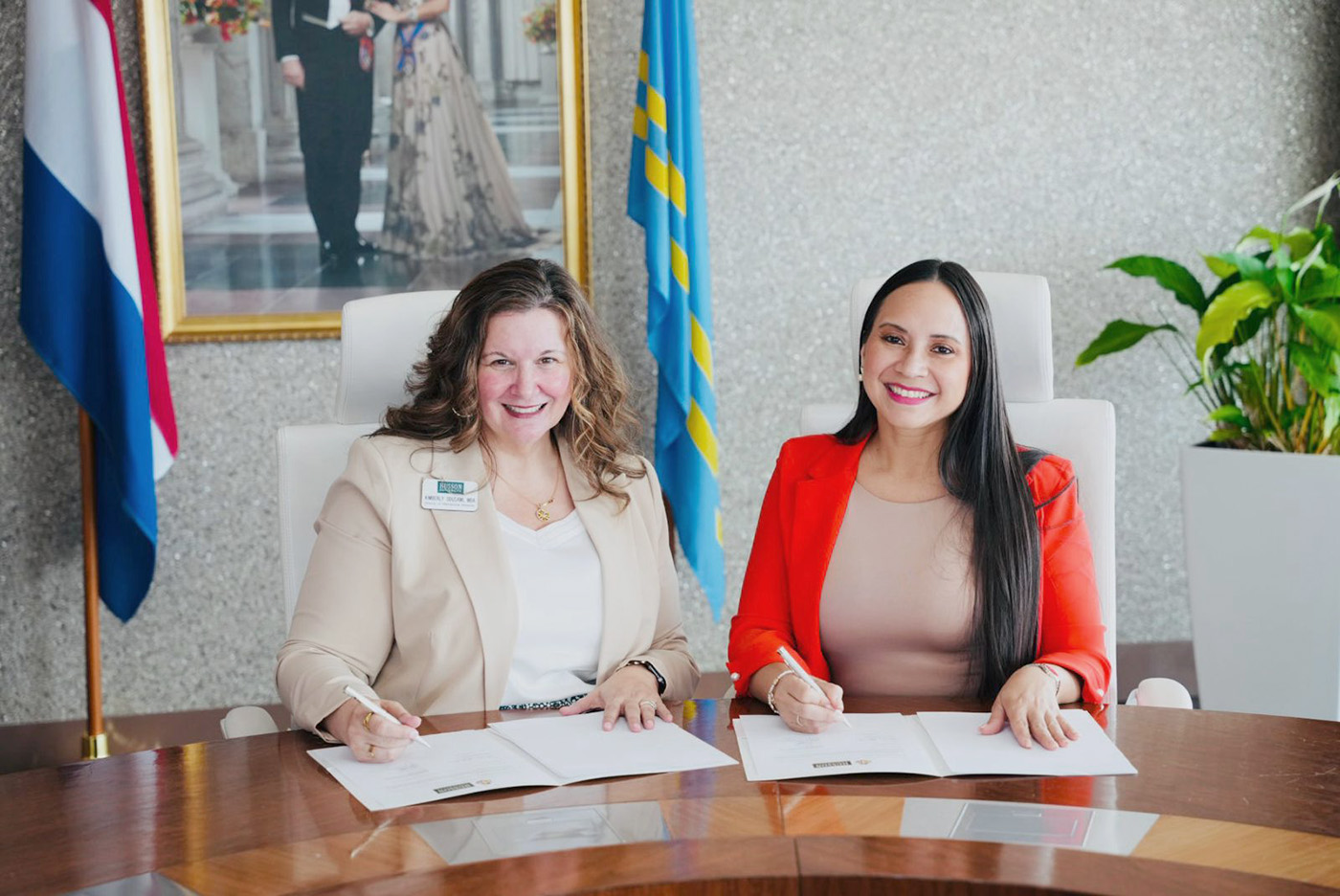 ORANJESTAD (AAN): Minister di Educacion, mr. Gerlien Croes, a firma un Memorandum di Entendimento (MoU) cu Husson University na Bangor, Maine, marcando un paso mas den e direccion di amplia e horizonte educativo pa nos hobennan.