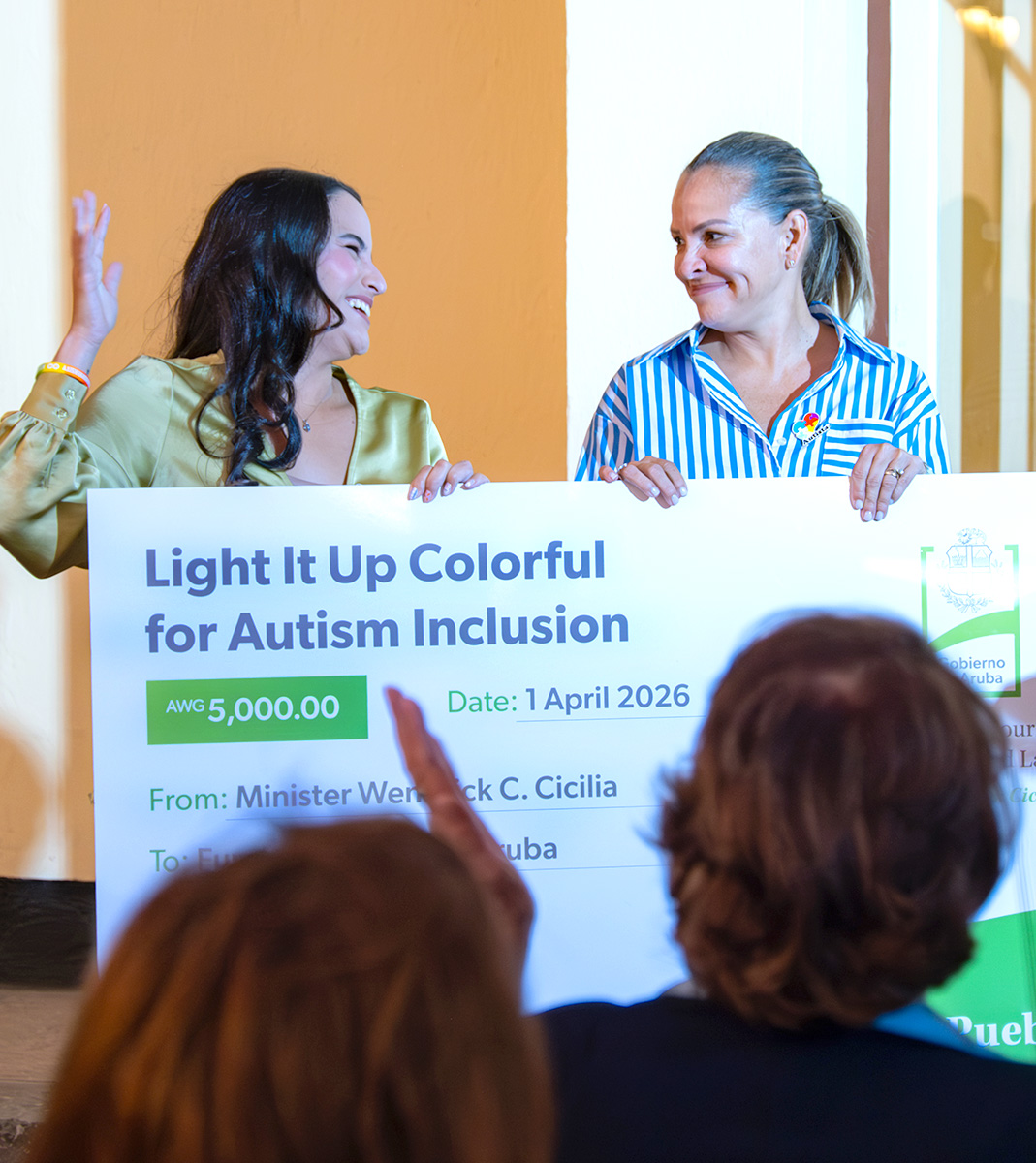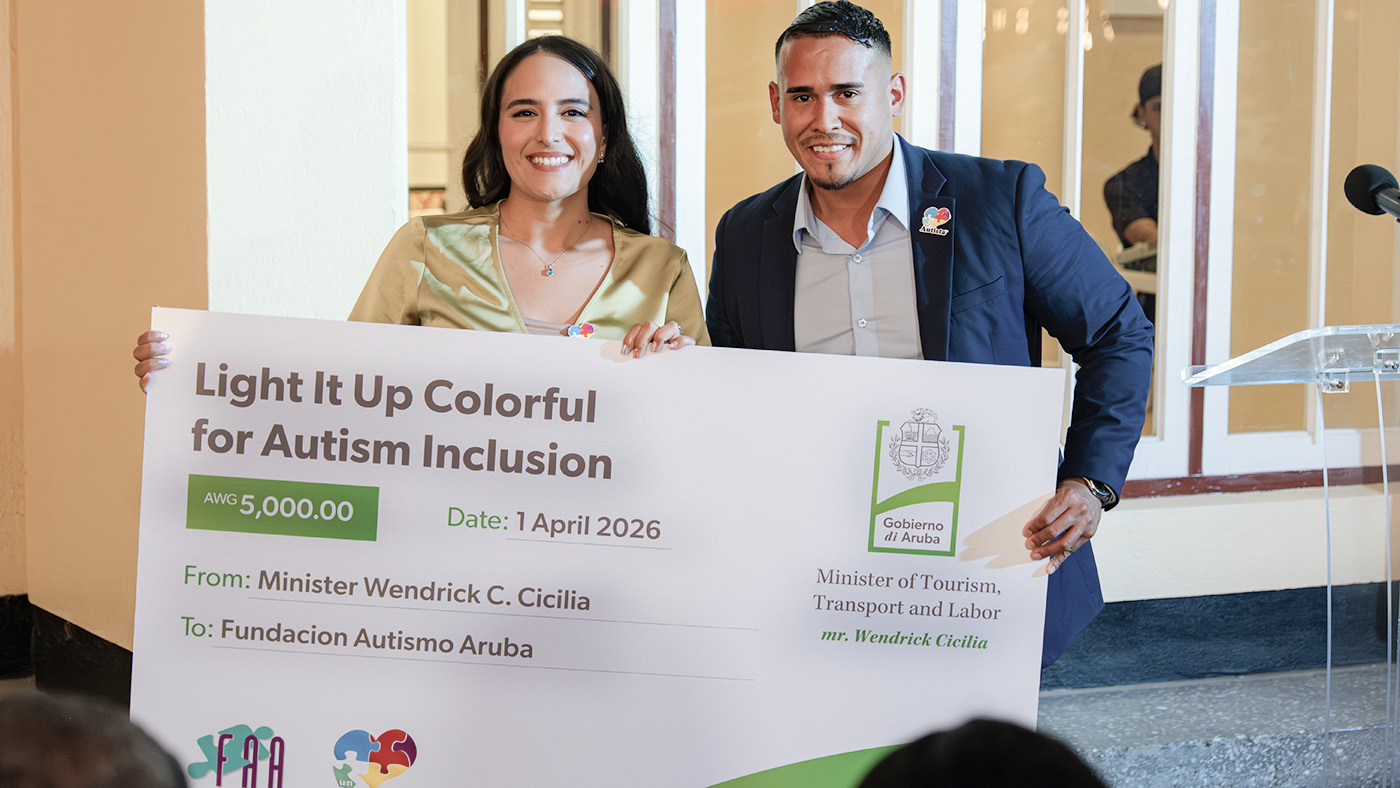 Como un demostracion concreto di sosten, Minister Cicilia a haci un aporte di 5.000 Florin na Fundacion Autismo Aruba, reconociendo e trabao valioso cu e organizacion ta eherce cerca e personanan cu autismo y nan famia. E donacion a wordo ricibi door di Carolina Span di e Fundacion.