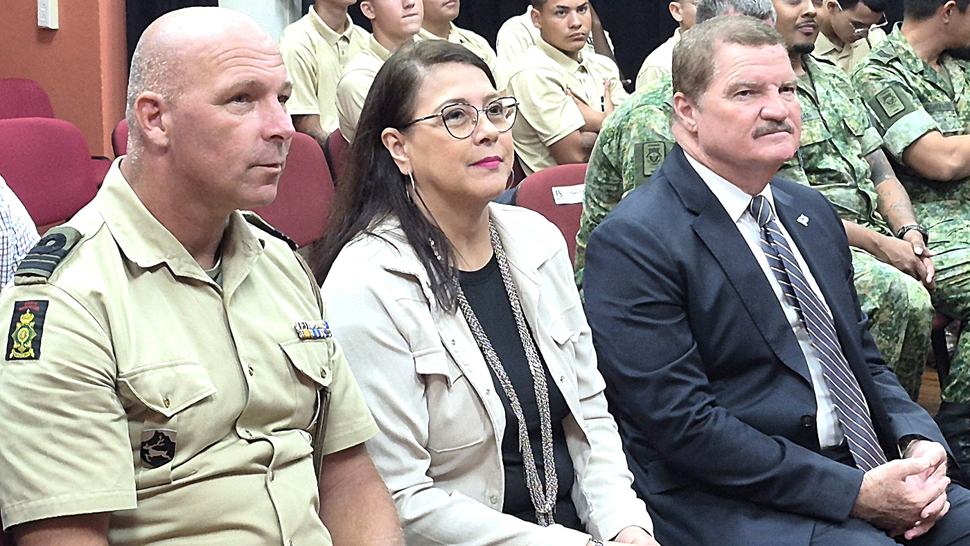 ORANJESTAD (AAN)-- Minister di Salud y Asuntonan Social, drs. Mervin-Wyatt-Ras, tabata presente durante e graduacion di e tres hobennan di Grupo SVT-19, cu a conclui, exitosamente, nan aña di Trayecto di Formacion Social, na Mariniers Kazerne.