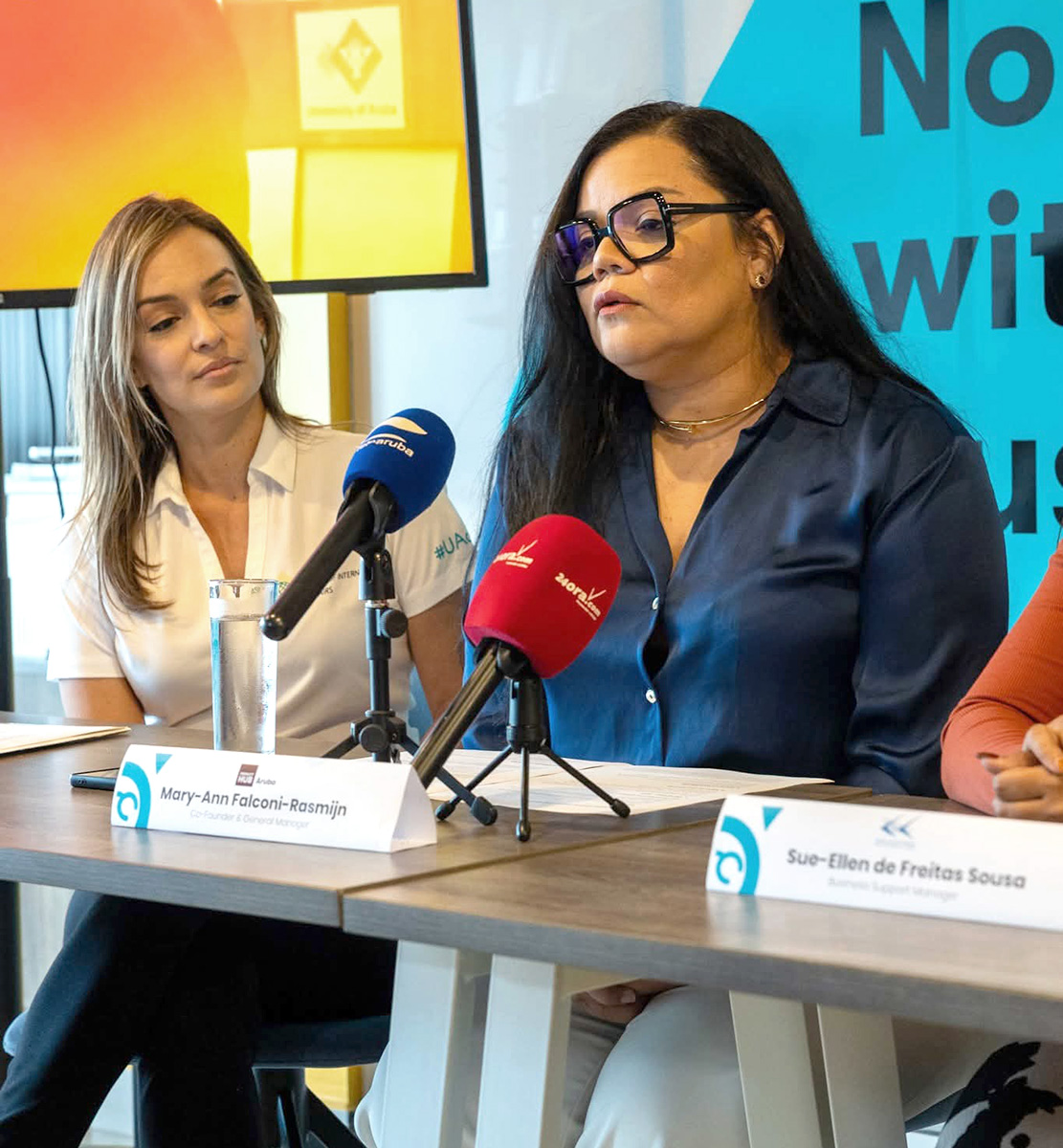 Durante e conferencia di prensa, representante di Universidad di Aruba, Señora Kimberly Kuiperi, a elabora encuanto e rol imporante di Universidad di Aruba pa cu e curriculum como tambe sigura calidad di topiconan cu ta worde ofreci, ta conforme cu standardnan internacional. Universidad di Aruba ta conta cu 2 facultad cu lo ta contribuyendo na e incubator cual ta ‘Financieel Economisch Faculteit’ y ‘Faculty of Hospitality and Tourism Management’.