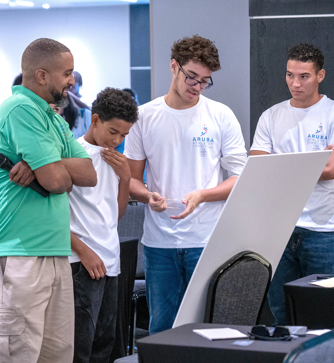 Aki a prepara un gran cantidad di material pa asina por haci diferente wega y ehercicio den grupo. Den e forma aki, a crea un ambiente hopi ameno y interactivo unda e hobennan a comparti cu otro y siña tur cos relata na anti-doping den e proceso. Ademas di esaki, e ekipo di ARUNADO a participa den tur wega y a intercambia cu e hobennan pa asina comparti tur e conocemento durante e ehercicionan.