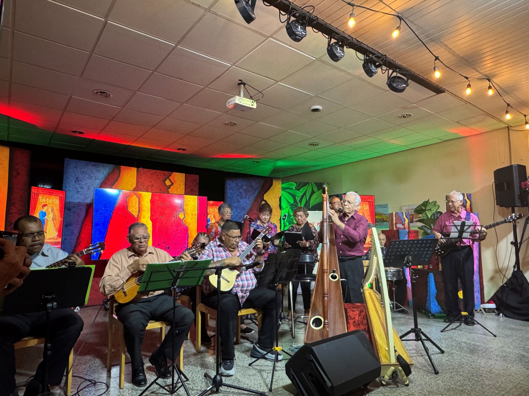 E publico grandi presente a wordo deleita pa cancionnan clasico presenta pa e artista Ronny Kock, Grupo Rondalla Universo y Academia Musical Harpa y Cuarta bou guia di e maestro Edgard Kelkboom. Esnan presente a keda conmovi pa e poemanan declama pa e poetanan Aurelia Croes y Marilis Becker, y tambe pa e bunita dedicatorio postumo na Frank Croes qepd, pa su aporte musical.
