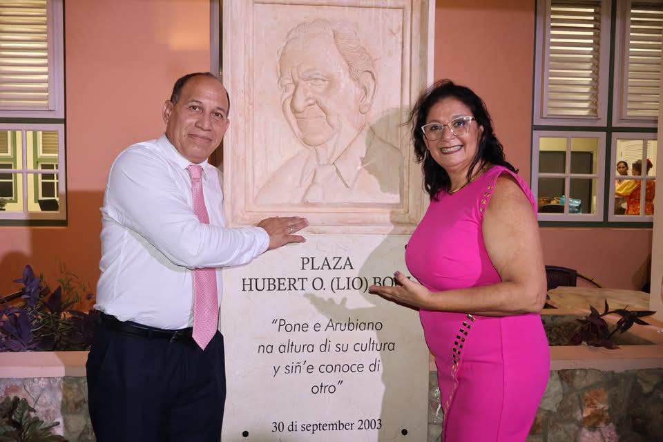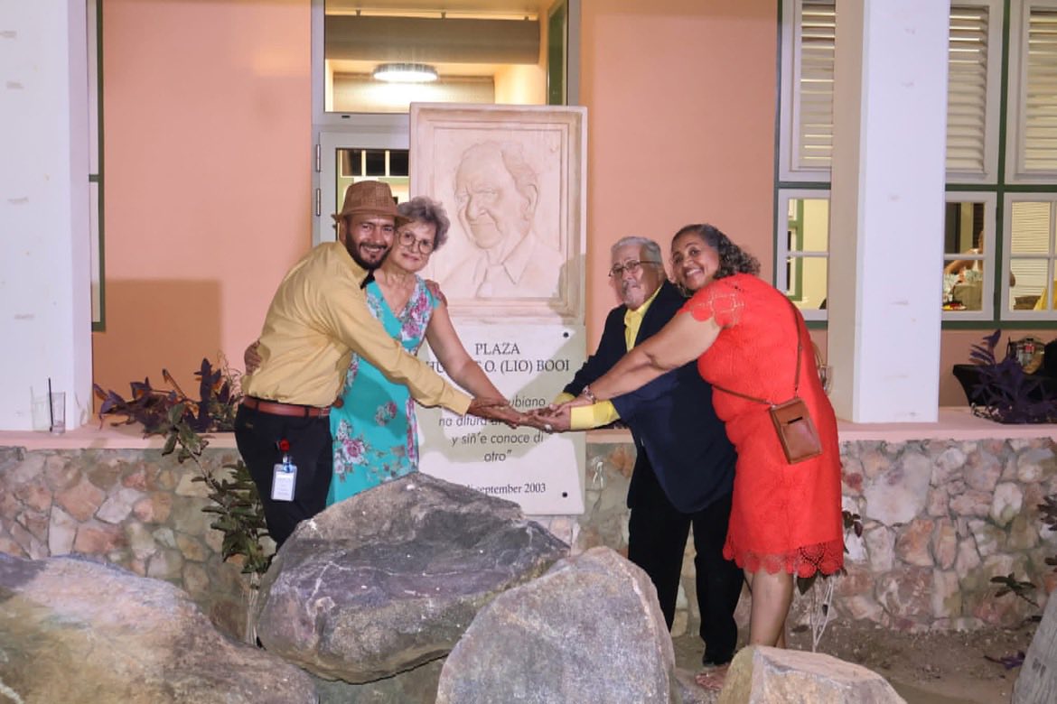 ORANJESTAD (AAN): Den cuadro di celebracion di su 47 aniversario, Departamento di Cultura Aruba (DCA) a organisa un emotivo evento pa reinaugura Plaza Hubert “Lio” Booi, ubica na Universidad di Aruba, banda di Maria Convent. E ceremonia a conta cu presencia cu famia di Sr. Hubert Booi, Minister di Cultura, director di Departamento di Cultura Aruba, partnernan cultural y invitadonan kendenan a rindi homenahe na e figura iconico Hubert Q. (Lio) Booi (1919), co-compositor di nos Himno Nacional Aruba Dushi Tera y tambe e prome director di Instituto di Cultura Aruba.