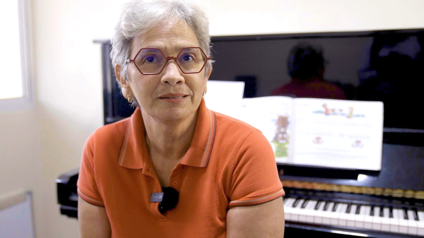 ORANJESTAD (AAN): Porta di Harmonia no ta solamente atrae nos muchanan y hobennan, pero ta atrae tambe personanan di tur edad. Un ehempel ta Lucia Ridderstad, di 65 aña di edad. Lucia ta un studiante cu ta tuma les di piano y les di violin. Lucia ta un ehempel bibo di cuanto musica por transforma bida. Pa Lucia, musica no ta solamente nota y tecnica, pero un manera pa sinti e curason y compronde harmonia den bida.