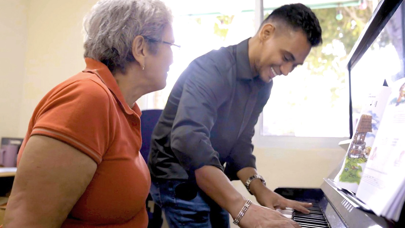 Mi famia mes no ta di musiconan, ta ami basta aña pasa mi a cuminsa for di tempo cu Instituto Venezolano tabata existi. Anto eynan mi a cuminsa cu cuarta. Mi ta desea di toca den publico. Mi ta toca guitara tambe, mi ta canta riba coro y toca guitara riba coro. Asina ta, mare un dia ami cu mi Maestro Rafael, cu ta esun cu ta duna mi les di piano, cu nos por toca huntu pa demostra prome cu mi bay for di e mundo aki cu mi por echt toca pasobra esei ta mi deseo.