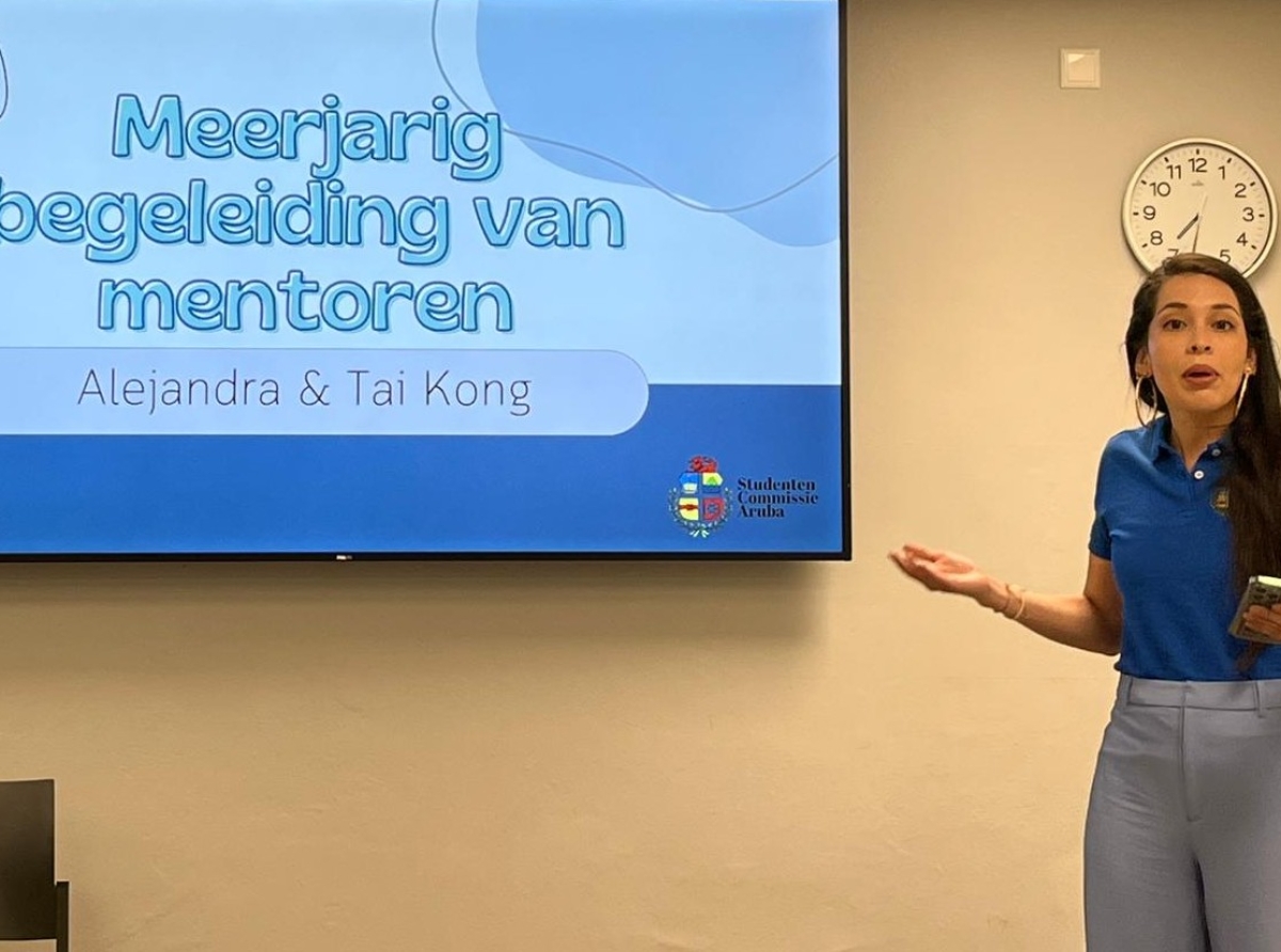 representa pa director di Gabinete di Aruba Joselin Croes LL.M/M.Sc.y Jennifer Sneek di departamento di Enseñansa di Gabinete di Aruba.