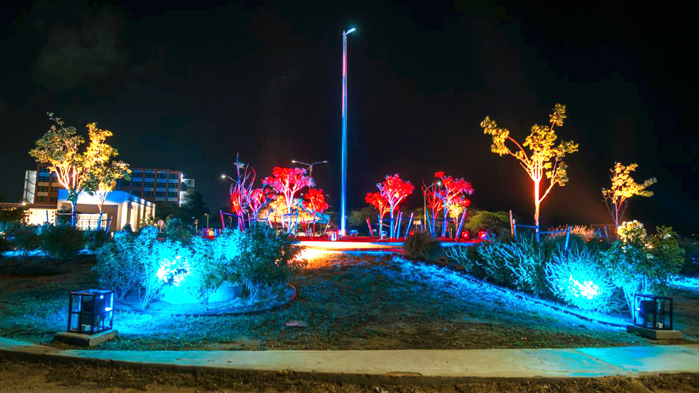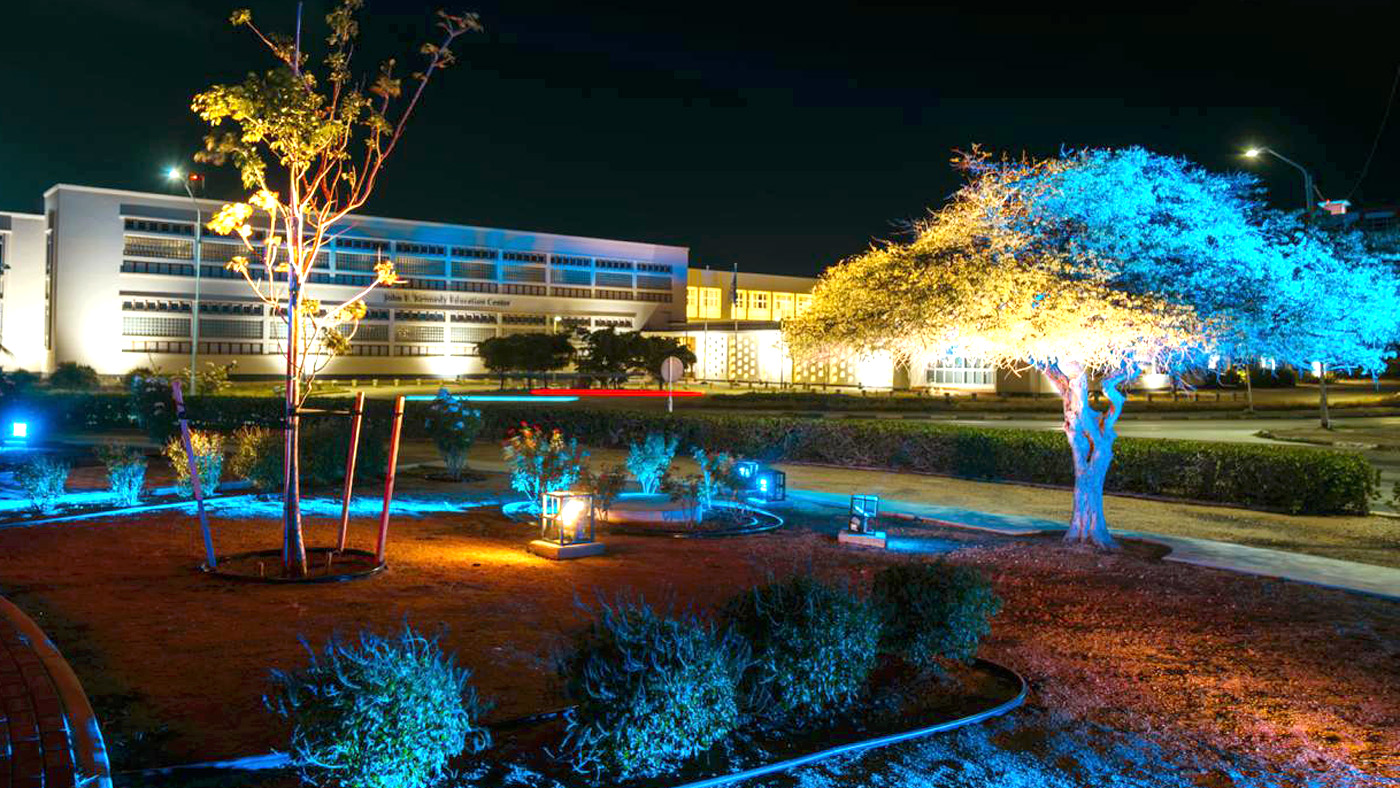 E iluminacion di e rotonde Las Americas ta forma parti di e celebracion nacional di Aruba, resaltando e orguyo, historia y progreso di e isla den marco di e conmemoracion di 40 aña di Status Aparte y 50 aña di Himno y Bandera.
