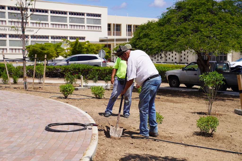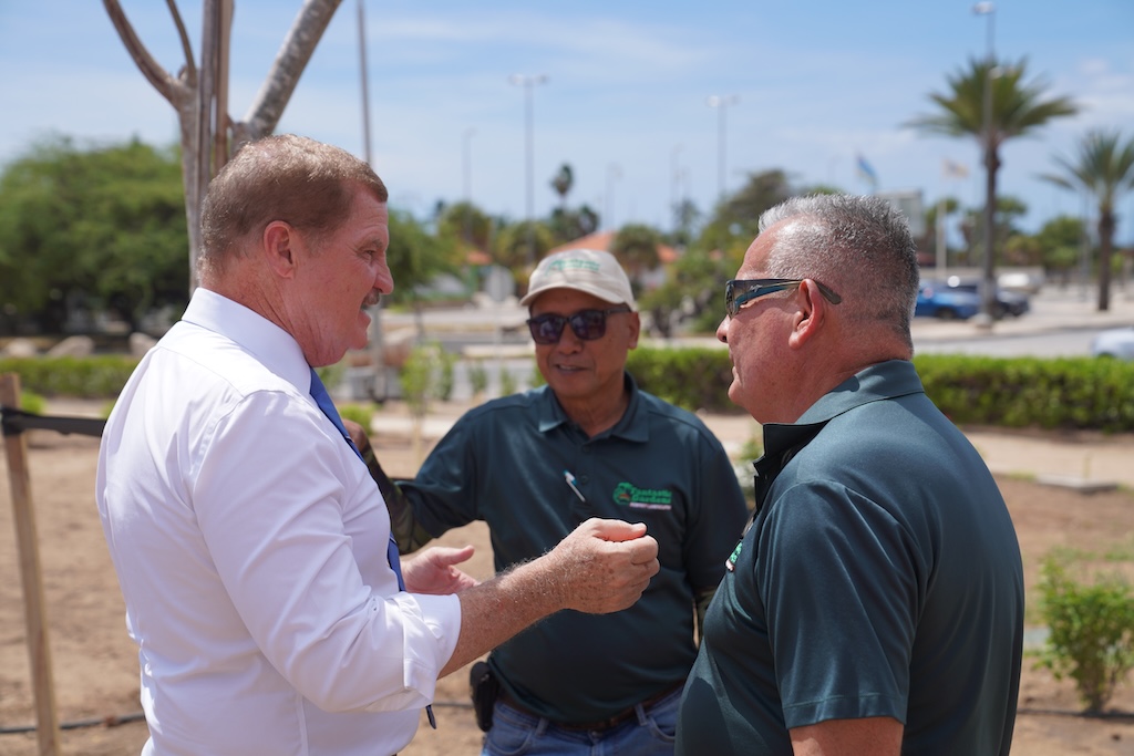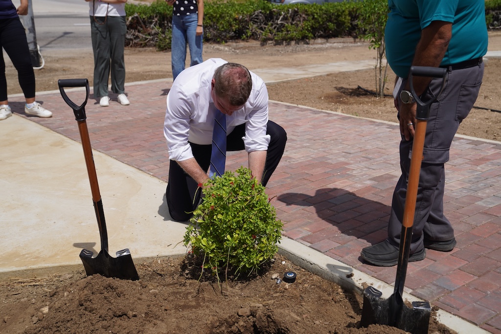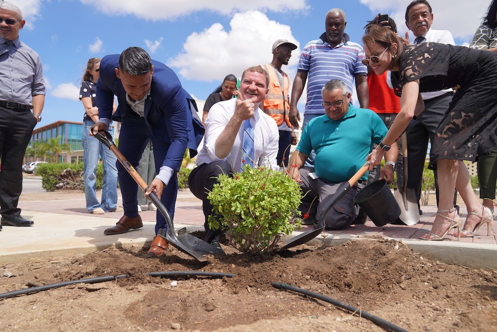 asisti na un ceremonia riba Rotonde Las Americas dilanti di Cas di Cultura relaciona cu e proyecto di reforestacion y di renobacion di ciudad. Despues di algun tempo cu ta renobando e rotonde aki, a toca turno pa embeyece esaki cu un gran cantidad di mata.