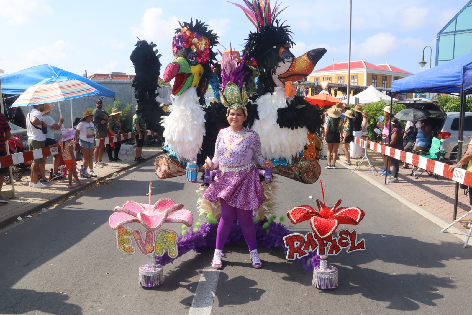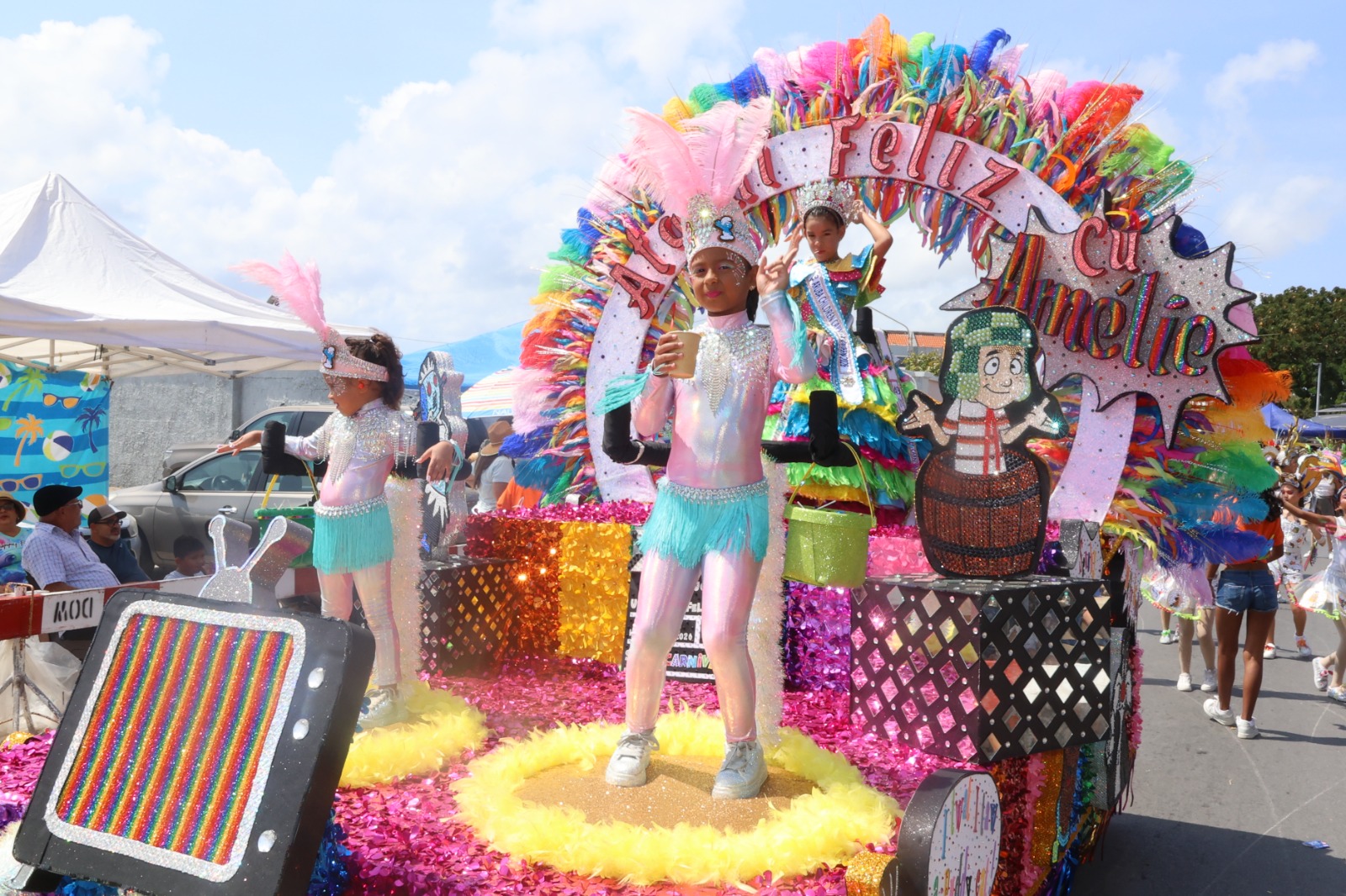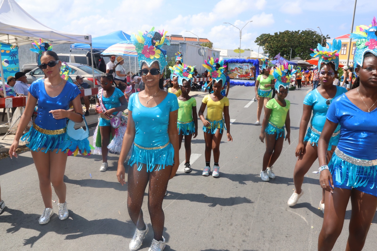 For di 1:00 di merdia, hopi famia, bishitantenan y tur hende amante di carnaval a sali pa disfruta di e parada dedica specialmente na nos muchanan.