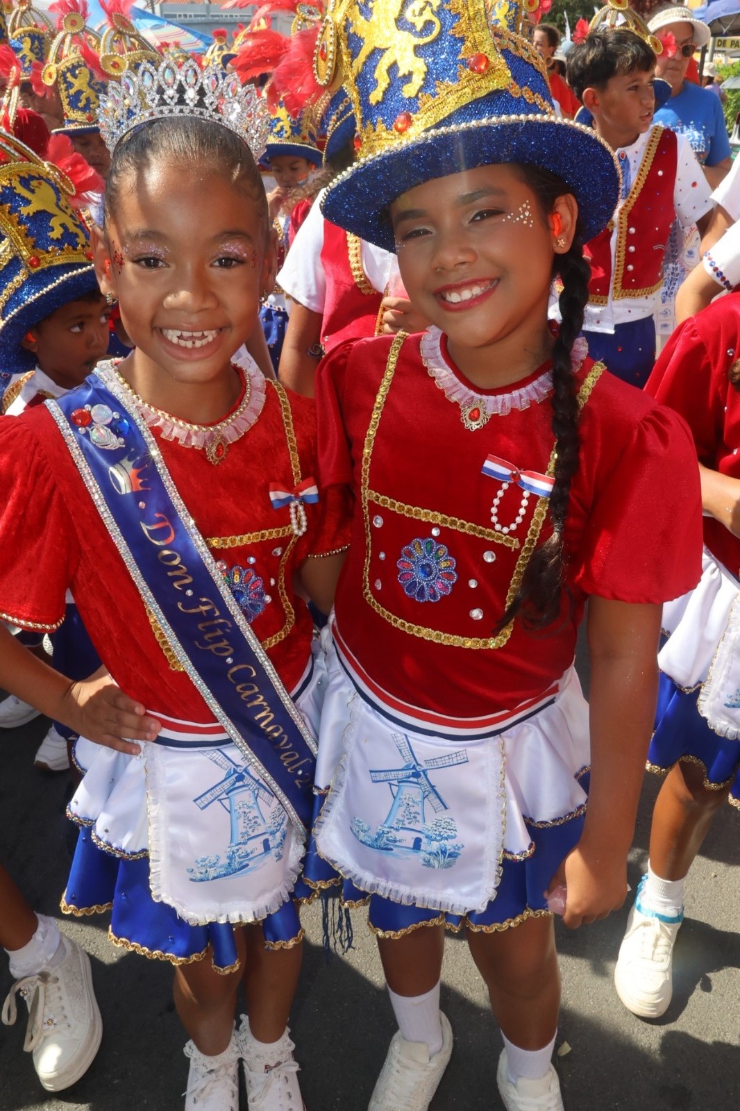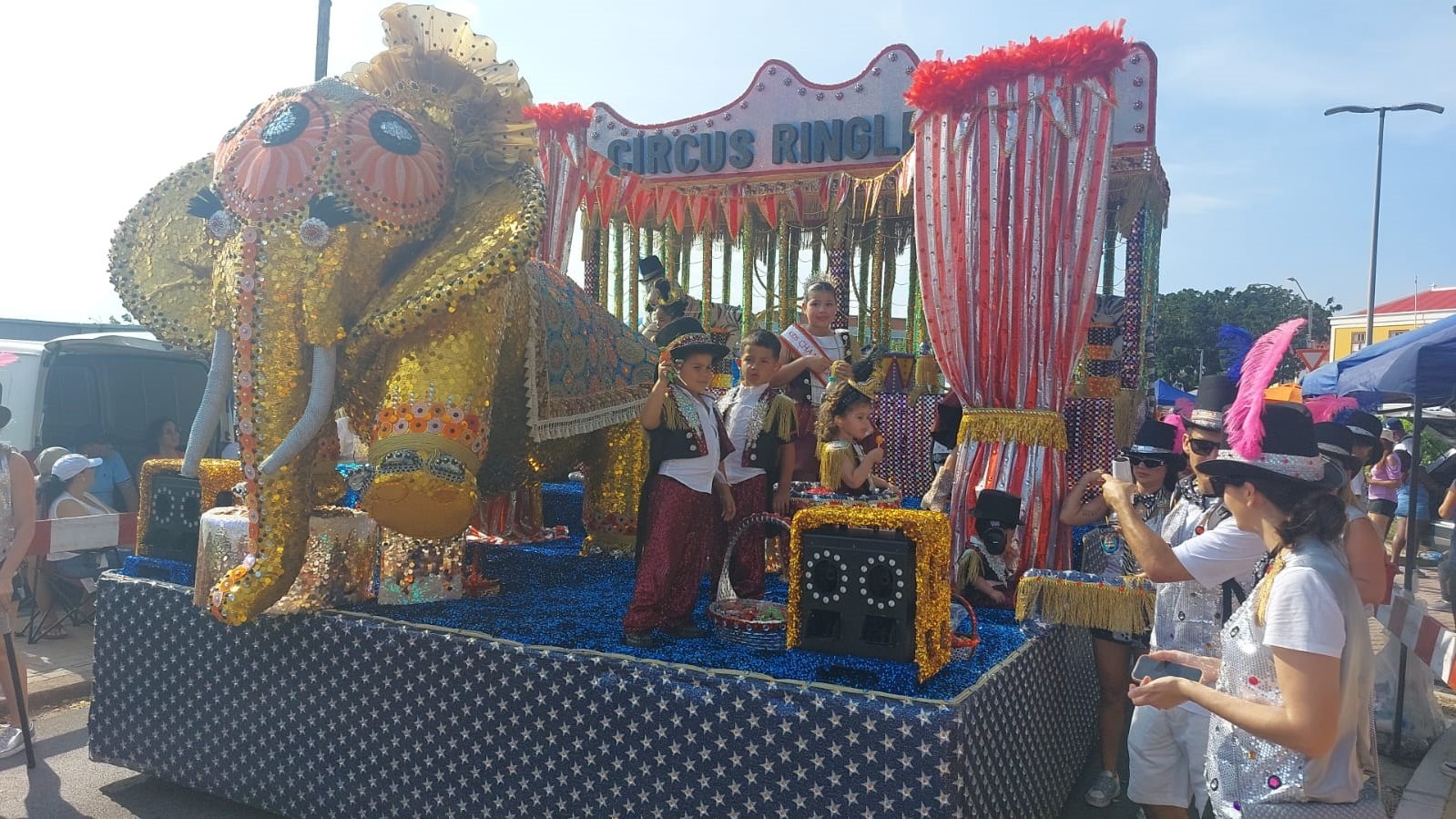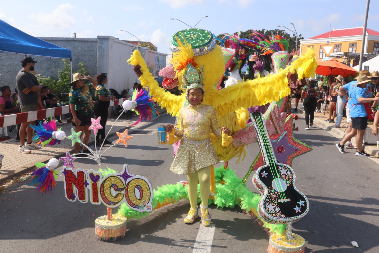 For di 1:00 di merdia, hopi famia, bishitantenan y tur hende amante di carnaval a sali pa disfruta di e parada dedica specialmente na nos muchanan.