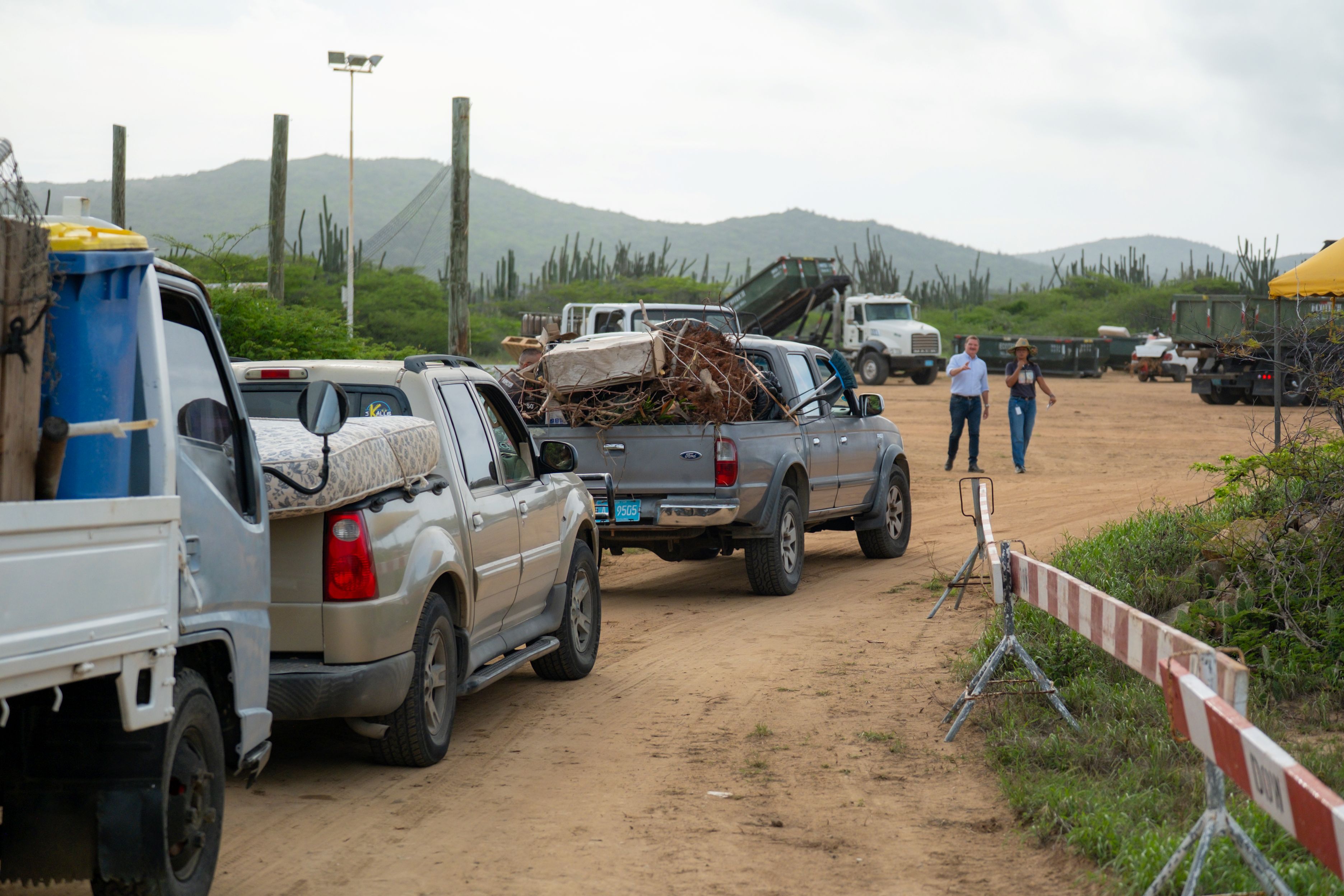ORANJESTAD (AAN): Diasabra mainta tempran a cuminsa presenta den fila largo, esnan cu a haci uzo di e oportunidad cu gobierno ta ofrece pa deshaci di desperdicio, den e accion di Baki den Bario. Veld di Arsenal na Angochi tabata bon prepara y organisa pa asina asisti tur cu a yega pa tira nan sushi afo.