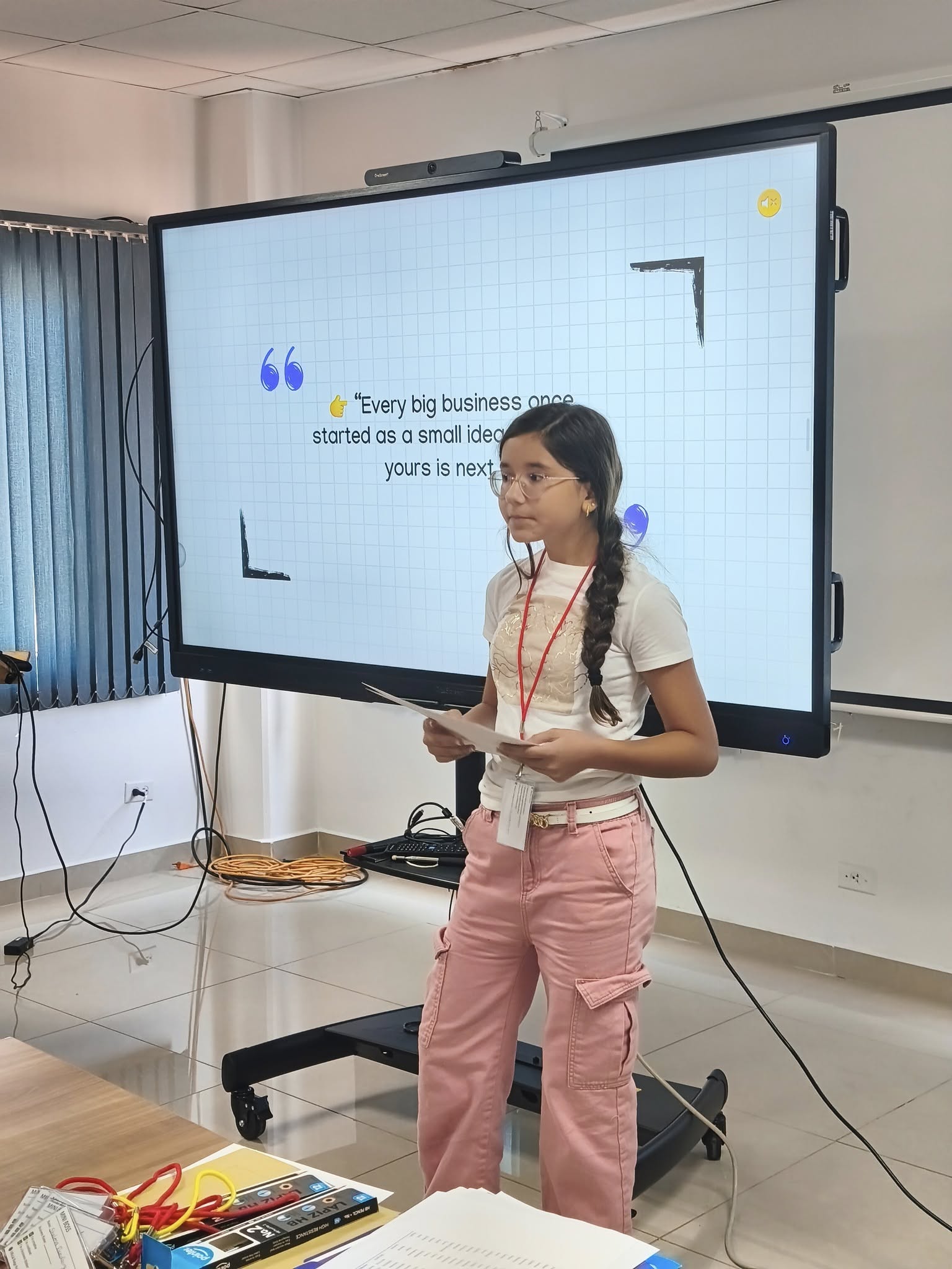 E workshop a keda presenta door di señora Louella Croes-Ras, Policy Advisor-Business Development IDEA di Departamento di Asuntonan Economico, cu tambe a presenta e parti con pa pitch un idea di un negoshi, caminda tur mucha a haya e oportunidad pa presenta nan ideanan di negoshi dilanti di e grupo. Maske cu na start di e workshop nervionan a hunga un rol cerca e muchanan, na momento di pitch nan ideanan, nan a presenta cu siguridad y orguyo.
