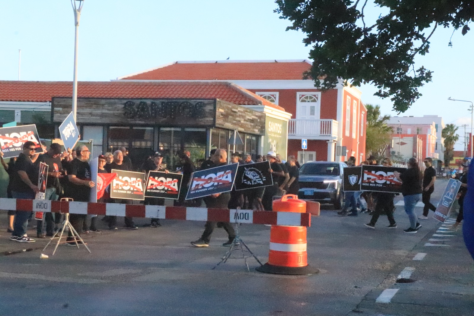 enfrente di Gabinete di Gobernador y dilanti Rey Willem Alexander y prensa Hulandes, pa protesta contra e Ley HOFA.