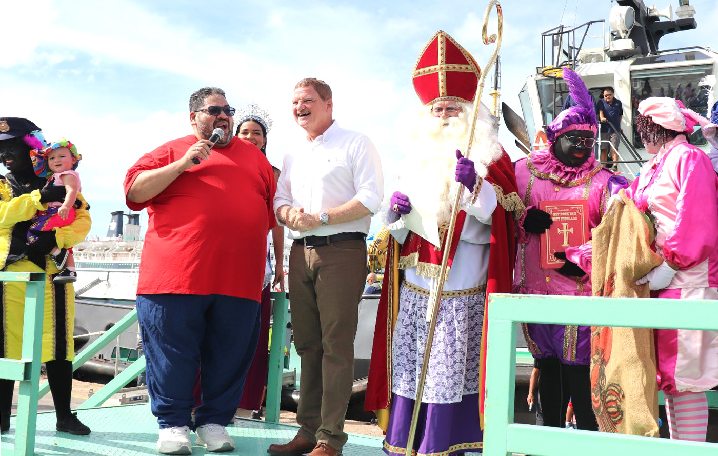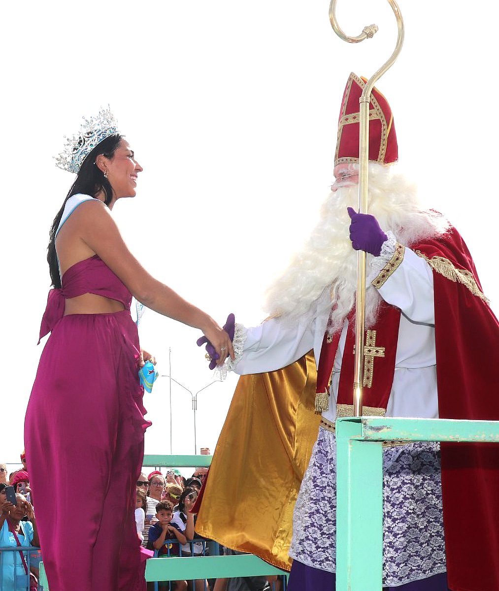 El a yega cu boto na Waf, y na su yegada a wordo ricibi pa Prome Ministro Mike Eman, y tambe Ministro Rene Herdé. Despues di esey, cu animo di MC George Winterdaal, e homber santo a subi escenario unda a ricibi bon bini di Tara van der Werk, kende ta Miss Teen Nuestra Belleza Internacional 2025.