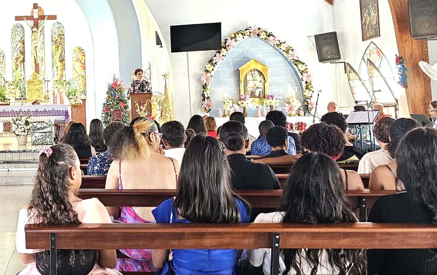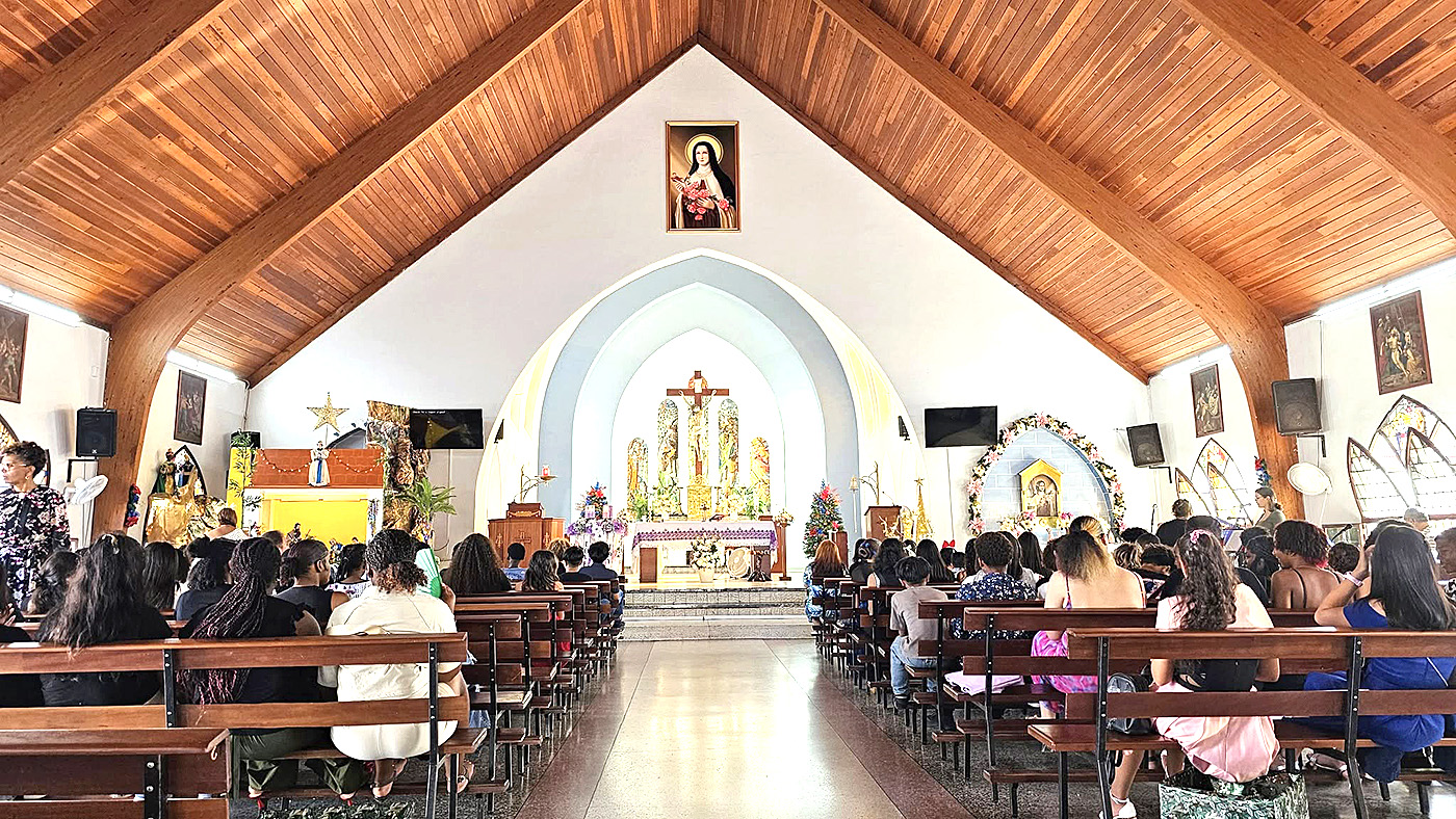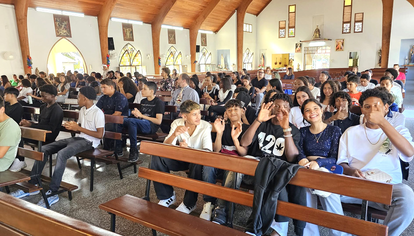 Esaki a tuma lugar den Misa Santa Teresita na San Nicolas, unda e studiante- y docentenan, hunto cu personal di directorado a sinta scucha predicashi conteniendo bunita mensahe pa dianan di nacemento di Niño Hesus.