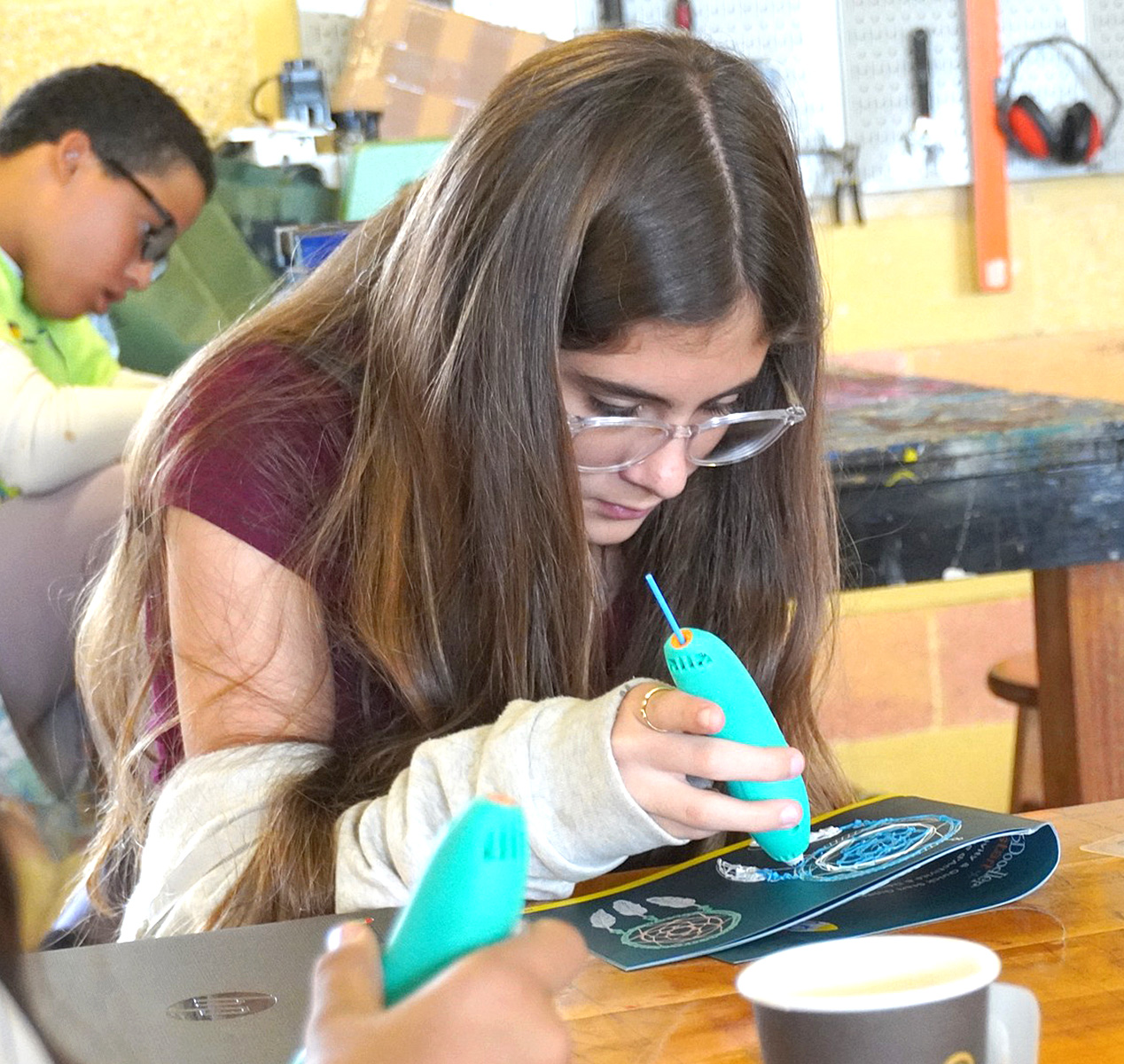 E alumnonan asina a bay profundiza nan mes den e proceso di diseño, creando modelonan prepara pa futuro den Tinkercad, y tambe traha cu man mes cu e pennan special yama 3D Doodler Pens.