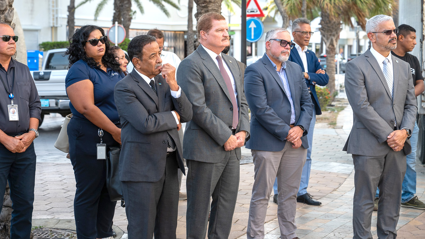 ORANJESTAD (AAN): Den cuadro di e proyecto di renobacion di e antiguo edificio di Banco Central cu despues a bira Ministerio Publico, cu ta forma parti di e trayecto di renobacion y revitalisacion di centro di Oranjestad, e siman aki den presencia di Minister President Mike Eman, Minister di Enseñansa, Gerlien Croes, Minister di Finansa, Geoffrey Wever, Minister di Infrastructura Rene Herde, Directornan di FCCA Julie Wever y Giovanni Anthony, Rector di Universidad di Aruba Sue-Ann Lee, Contratista CH y Arquitekto Raffy Kock, a inicia cu construccion di e studentenflat den centro di Oranjestad, marcando un paso importante den e ehecucion di e proyecto y den e meta pa revitalisa e centro di Oranjestad.