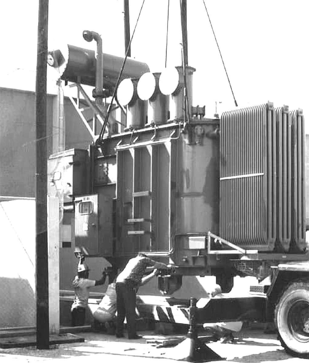Cu grua tabata pone y instala e power transformer den e Sub-Station, y e potret ta di decada di 1960.