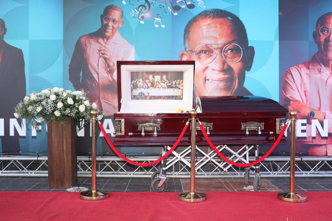 Riba combinacion di potret DIARIO tin un presentacion grafico di e momentonan aki, di tristeza pasobra fisicamente e lo no tey mas, pero alavez contento pa su legado cu ta locual ta keda pa semper den e memoria di un pueblo cu a stim’e, y a keda hopi gradici pa locual el a haci pa Aruba su musica y cultura y ademas pa mantene bunita y digno di respet nos Misa di Alto Vista.