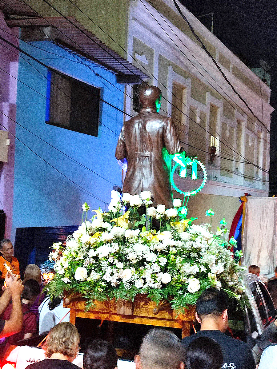 Bao di e cielo di anochi, multitud di hende canando cu bela y rosarionan den man, a cuminza cu un parada acompaña cu imagennan venera di e beatonan. Tambe tabata canando cu bandera Venezolano, y tabata cantando cancionnan gospel.