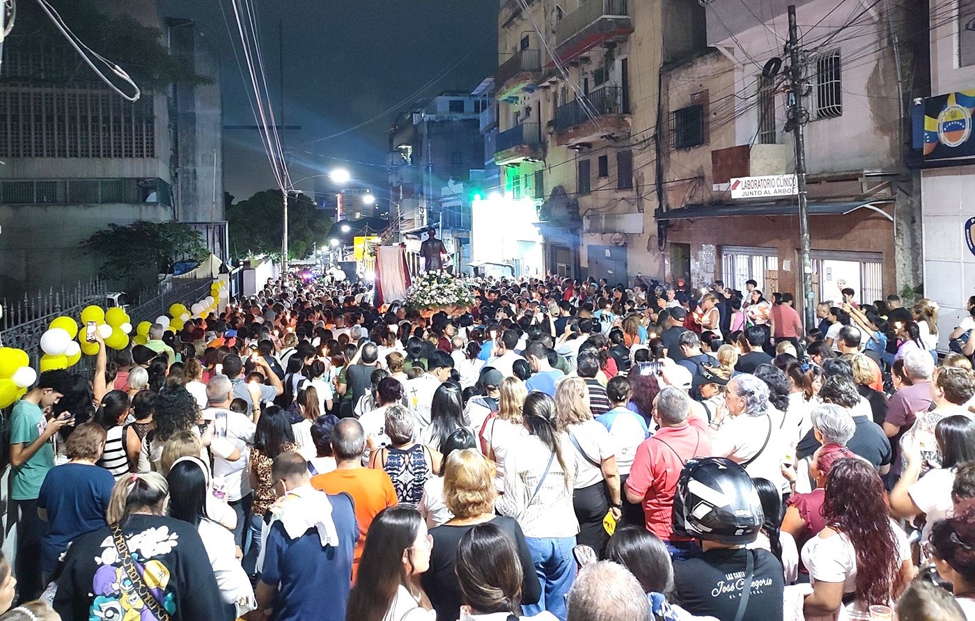 Tur cos a cuminza ora cu e fielnan di e dos personanan admira aki a aglomera na Plaza de La Pastora, cu ta un punto neuralgico di e tradicion catolico na Caracas.