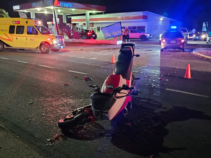 Polis di San Nicolas a yega na e lugar di accident, a nota cu ta trata di un choke entre un auto sedan y un motorcycle. E motorcycle tabata coriendo riba e caminda principal, y inespera un Nissan Versa color shinishi a sali for di caminda banda pazuid pa cruza bay nort, sin duna preferencia.