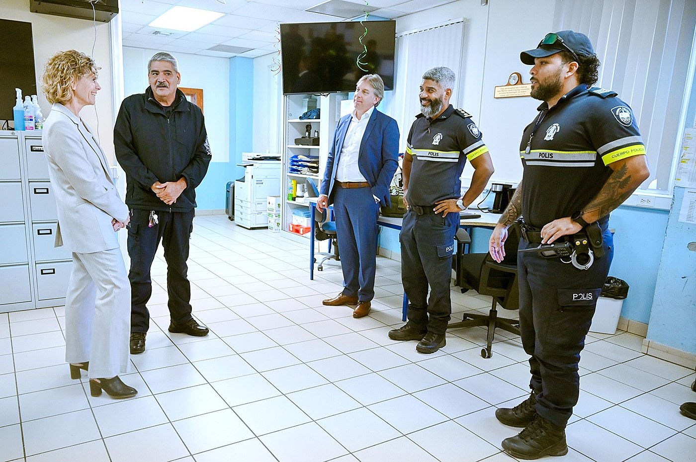 ORANJESTAD (AAN): Recientemente Cuerpo Policial Aruba a ricibi un bishita di trabao di Altocomisario di Nationale Politie Nederland, esta señora Janny Knol hunto cu su delegacion.
