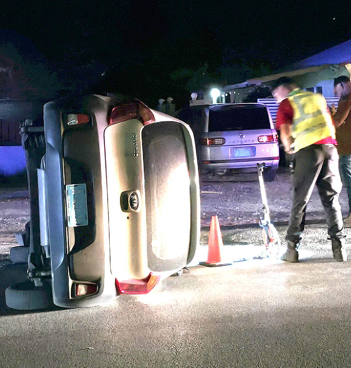 Mesora a manda patruya di Playa pa eynan. Na yegada, dilanti di Caya Betico Croes 225 a bin haya cu un auto compacto Kia Picanto color blanco cu number A-42628 gekenter. Testigonan a bisa cu e auto a caba di sali di rotonde, biniendo pabao, y ni 55 meter mas pabao el a baha di caminda na su banda drechi, dal den un palo di luz dilanti Caya Betico Croes 227, bolter varios biaha y finaliza como 15 meter mas pabao net banda di un Abri di warda bus. Algun persona cu a core yega, a logra yuda pa e chauffeur a sali, y el a keda eybao sinta banda di e auto.
