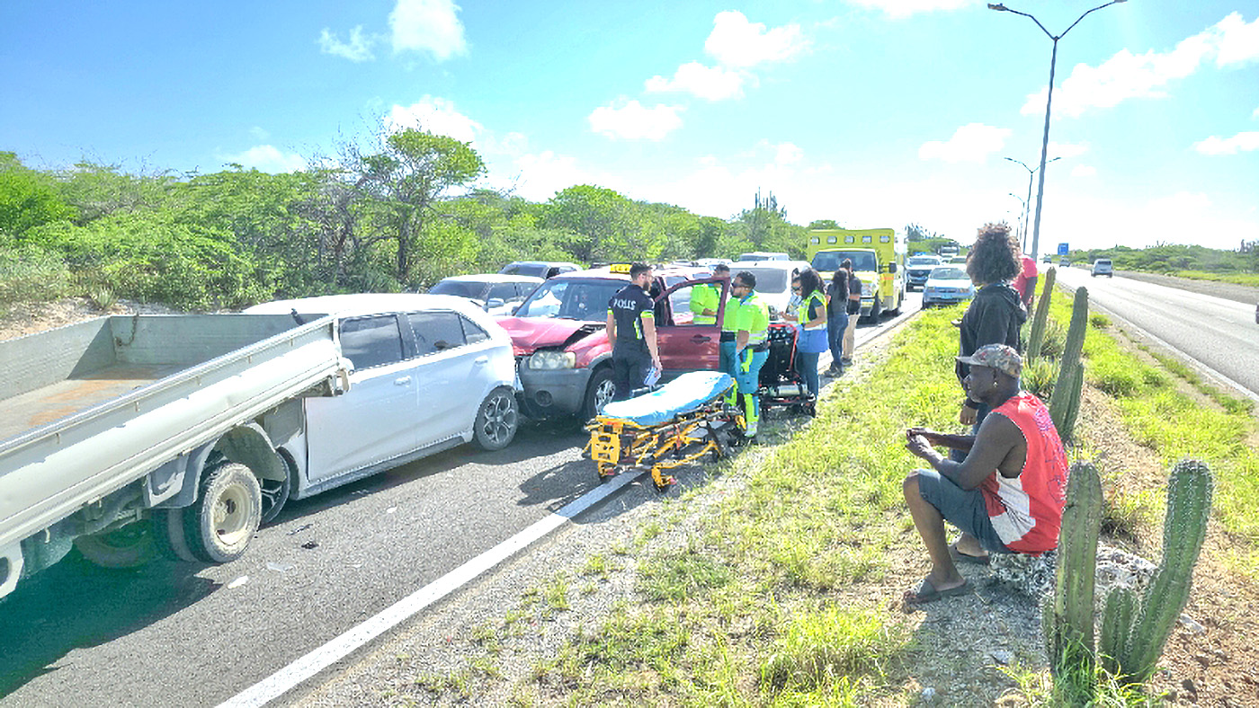 Dos ambulance a presenta na e lugar y por a mira Paramediconan transportando un señora pa ambulance. E señora tabata mustra ok, pero a wordo hiba pa Servicio di Emergencia na Hospitaal pa control di posibel whiplash.