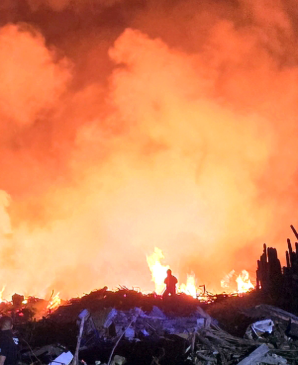 Na e momento ey, e biento a cay casi por completo, duna un ventaha na e bomberonan pa contene e candela, evitando e di sigui cana. Pero toch e tabata basta grandi y feroz.