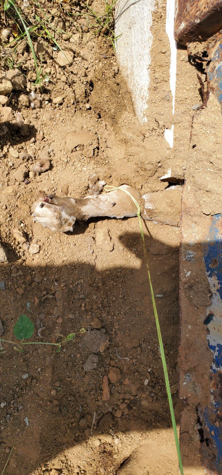 A hasta yama Serlimar pa check si por a haya peticion pa kadaverophaler lo por a haya peticion pa busca cacho morto den area di Paradera. A base di esaki a bay na un bouwkeet riba caminda di Paradera pa Nuñe, y na un Container cu ta ser uza pa bouwkeet, a bin haya Bobby morto. Su pia tabata mara cu un cabuya, y e curpa di e cacho tabata manera pusha bao di e bom di e container.